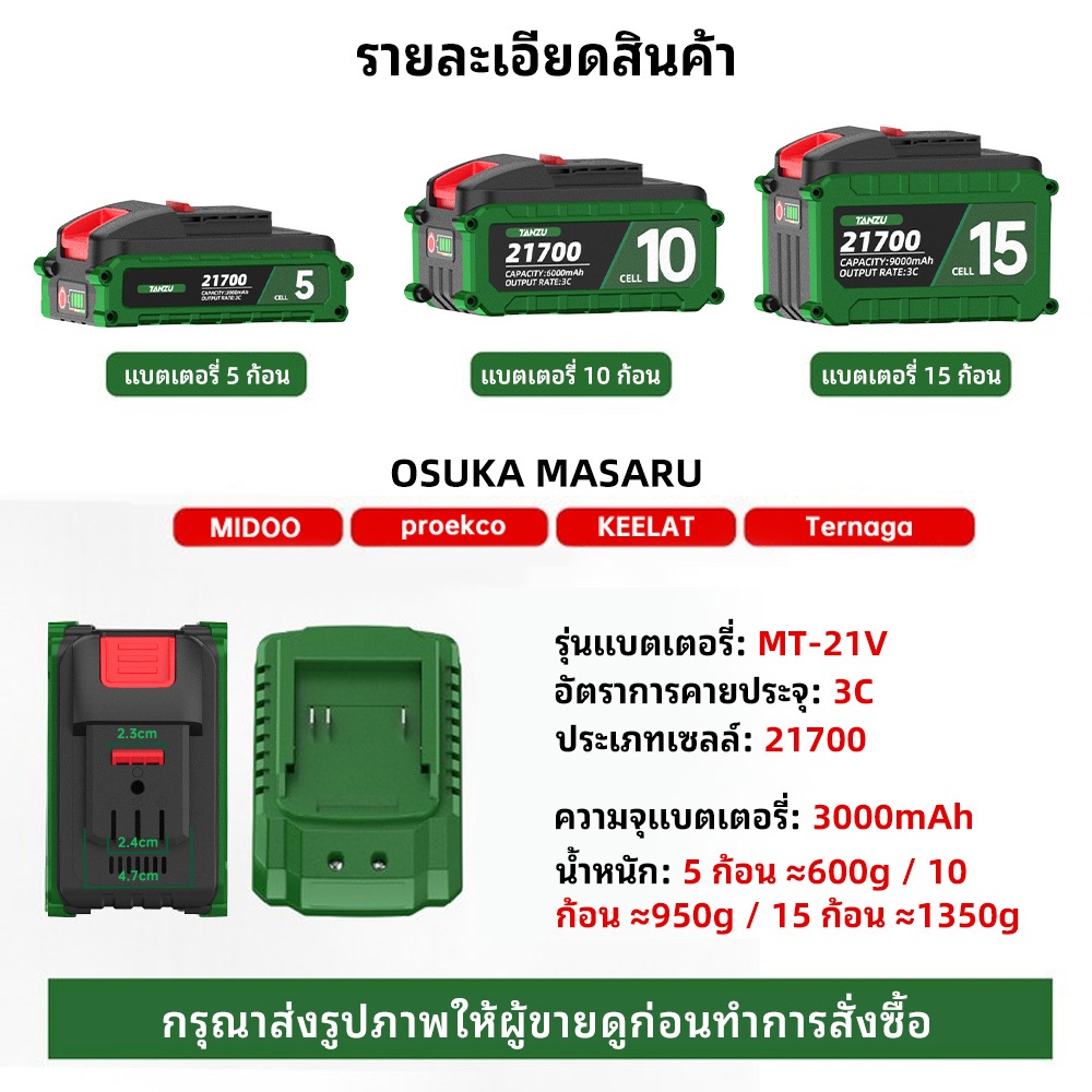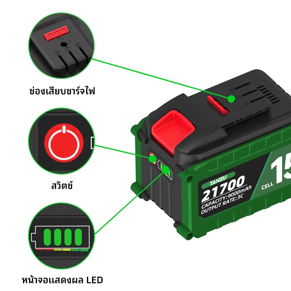 TANZU แบตเตอรี่ DY Type 21700 ลิเธียม 3Ah/6Ah/9Ah 21V ความจุสูง สำหรับสว่านไฟฟ้า และเครื่องมือไร้สาย