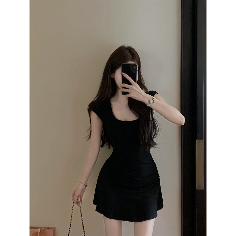 Luna Shop พร้อมส่ง ชุดเดรสสไตล์เกาหลี มินิเดรส สไตล์สลิมสั้น ดีไซน์เอวจีบ แฟชั่นเกาหลีมินิมอล หวานและเซ็กซี่