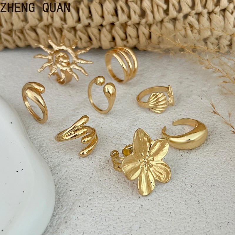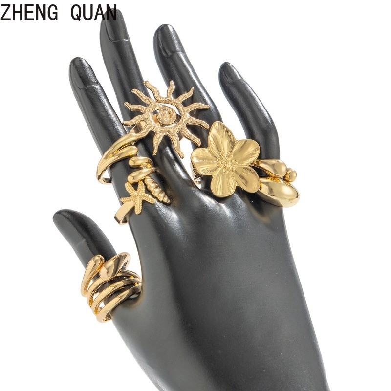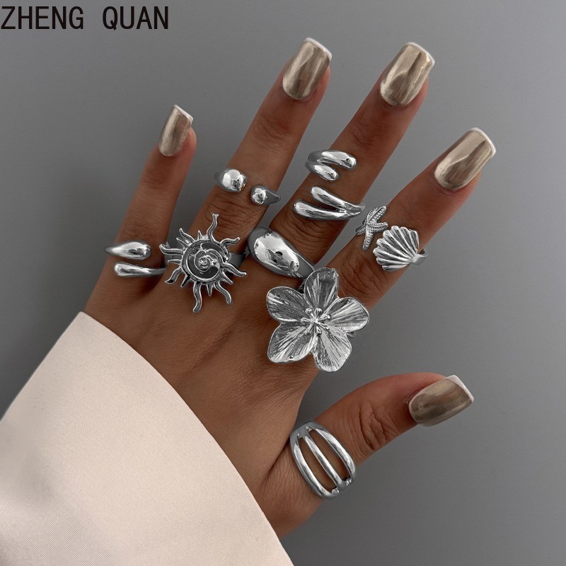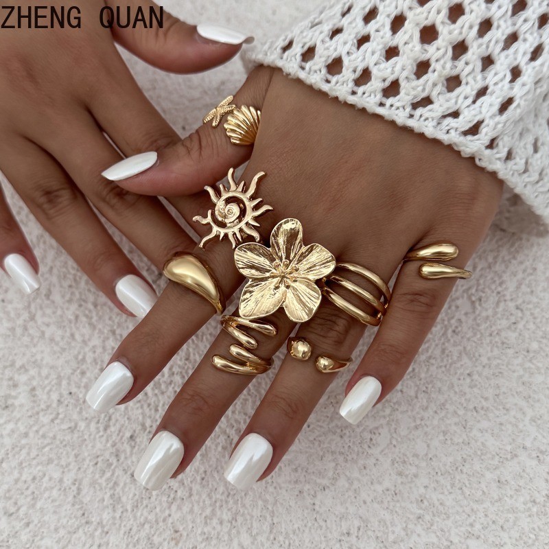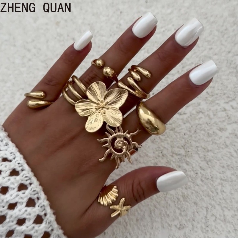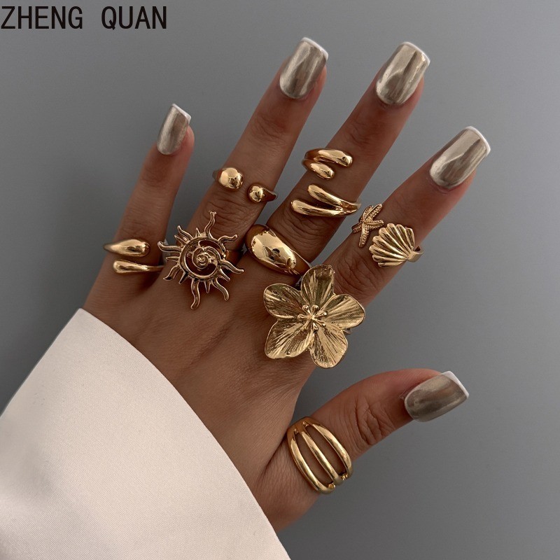 แหวน Knuckle ปลาดาว แบบเรโทร สร้อยข้อมือทองเงิน สำหรับผู้หญิง แฟชั่นเครื่องประดับและของขวัญวันหยุด