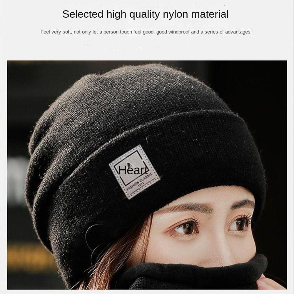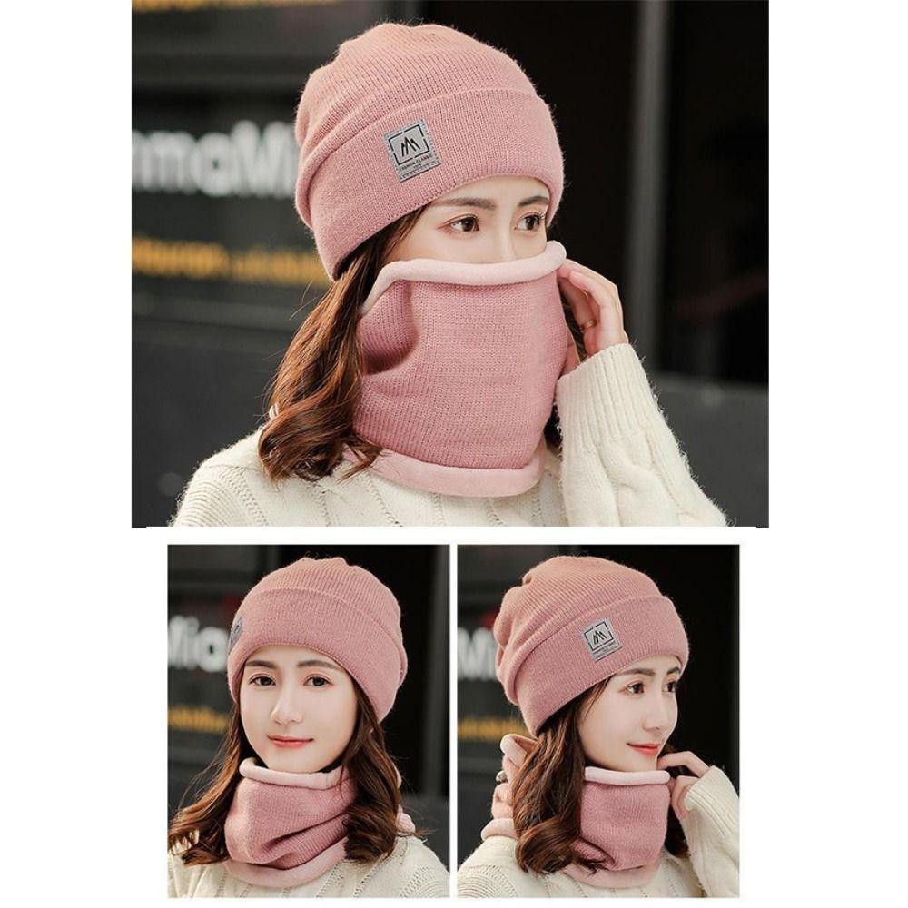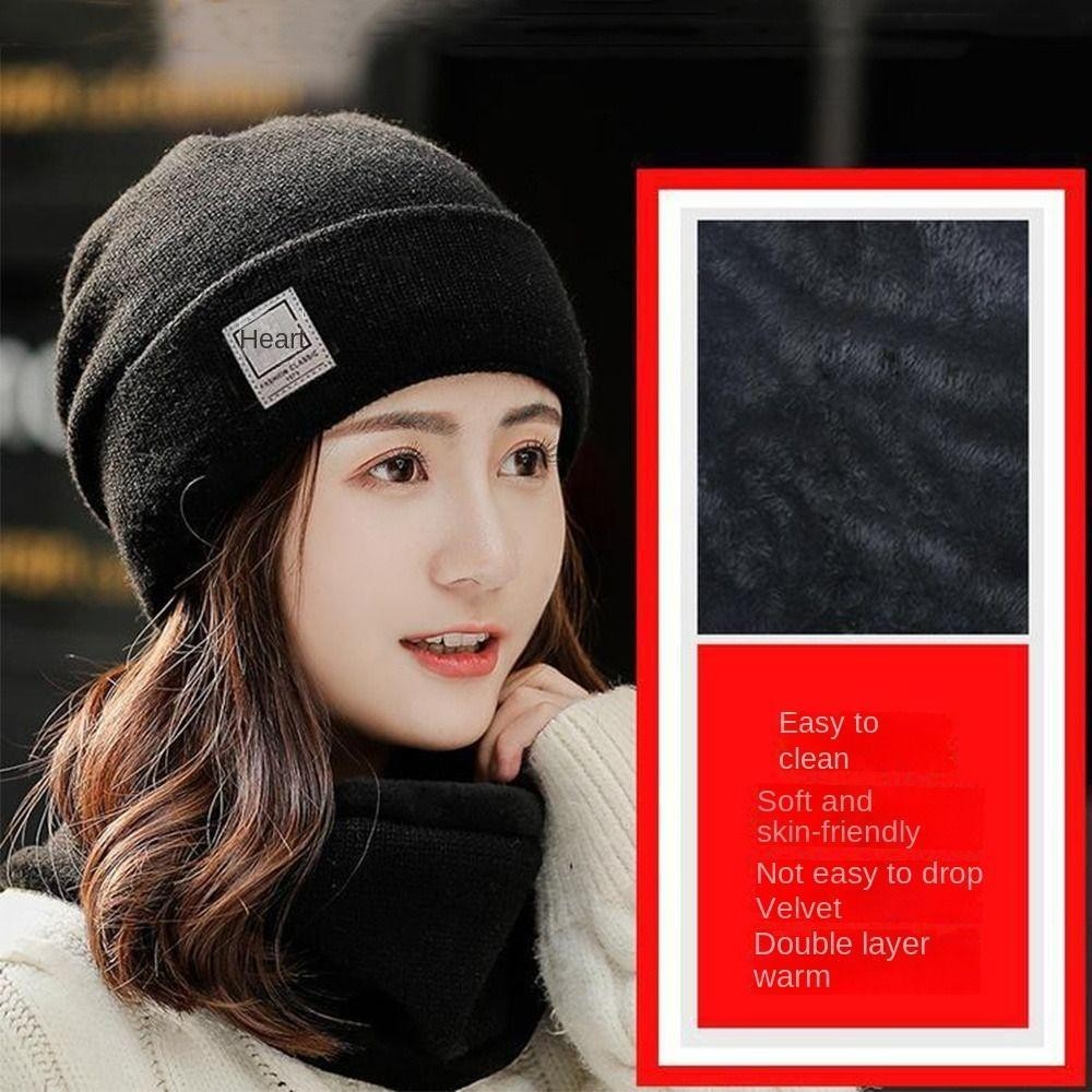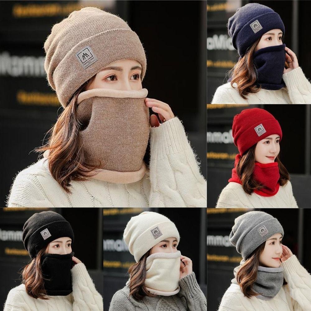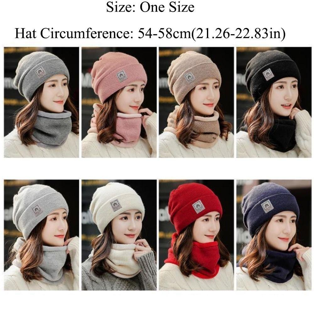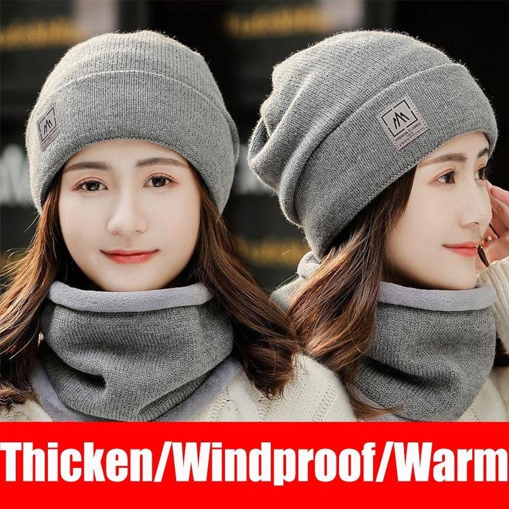 BACKSTAGEREETDV Beanie Hat Scarf Set, Windproof Cold-proof Warm Knit Hat, Solid Color Thicken Plus Velvet Scarf Neck Cover Mens Womens