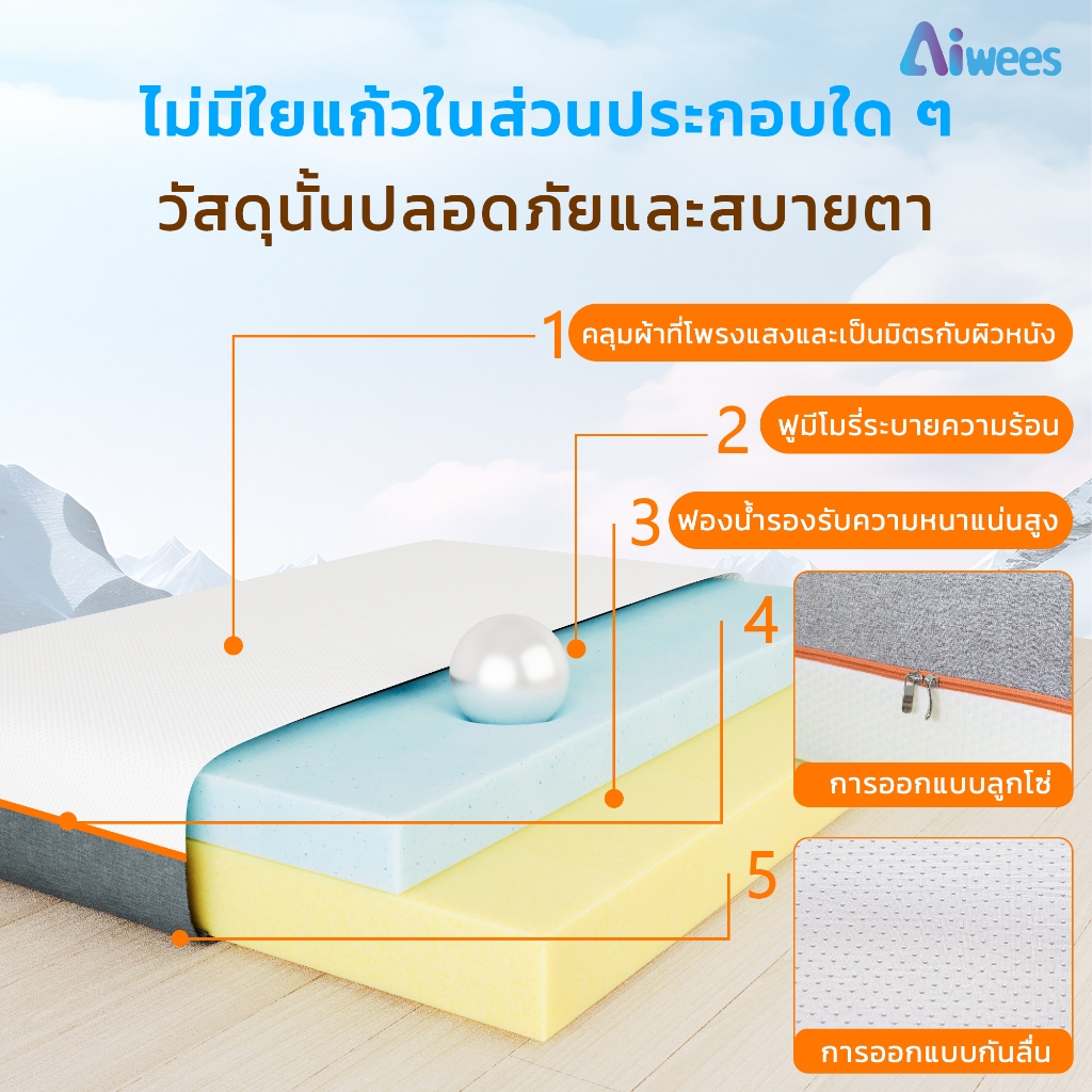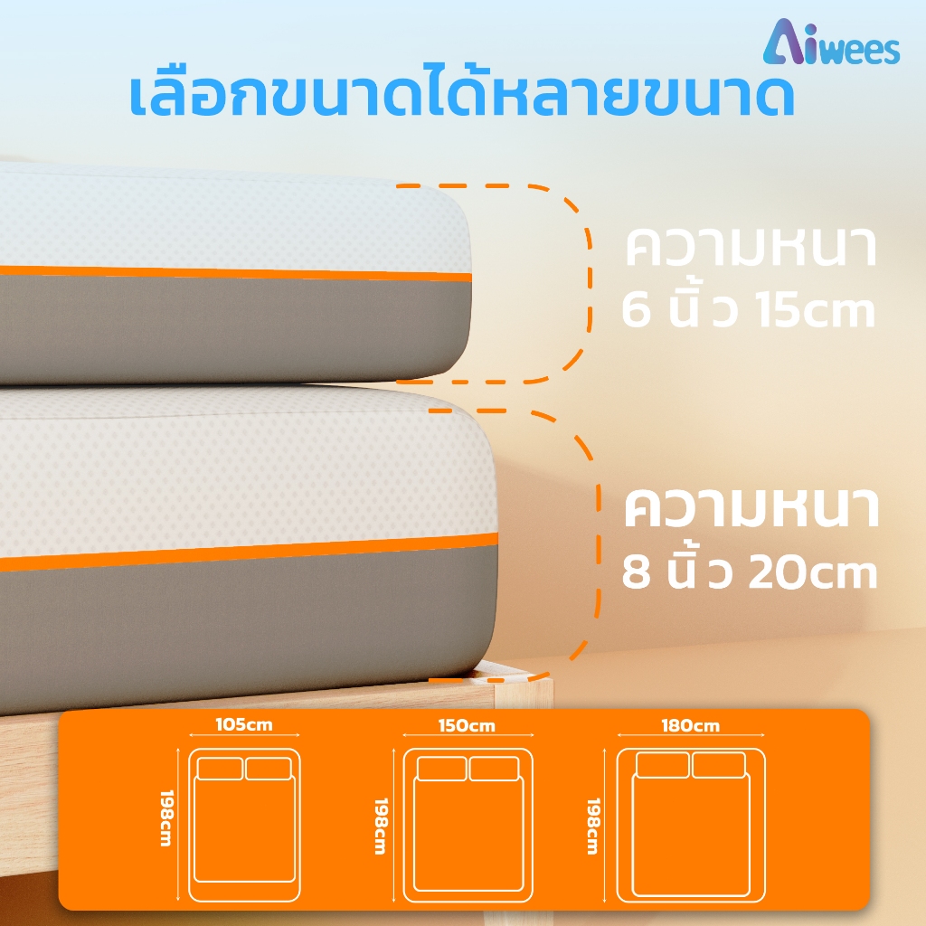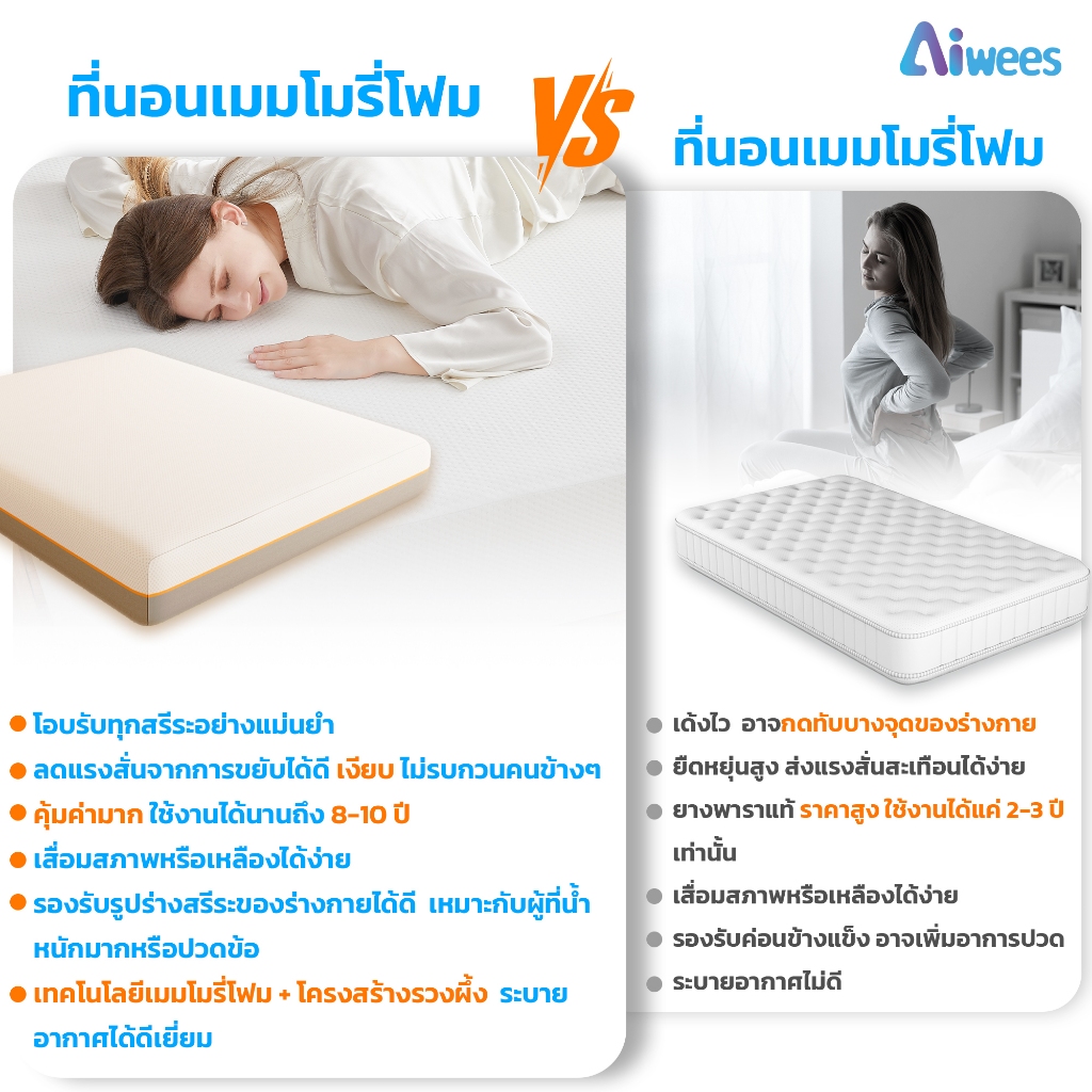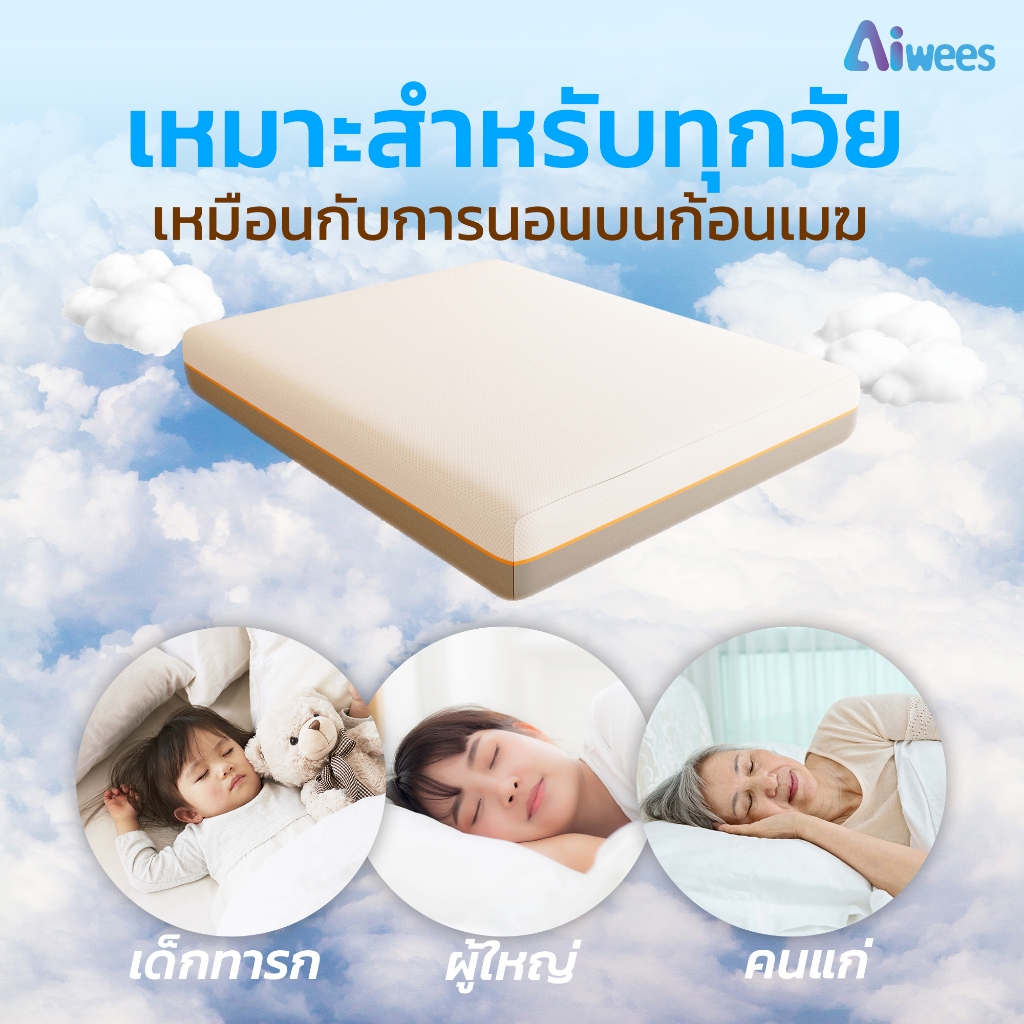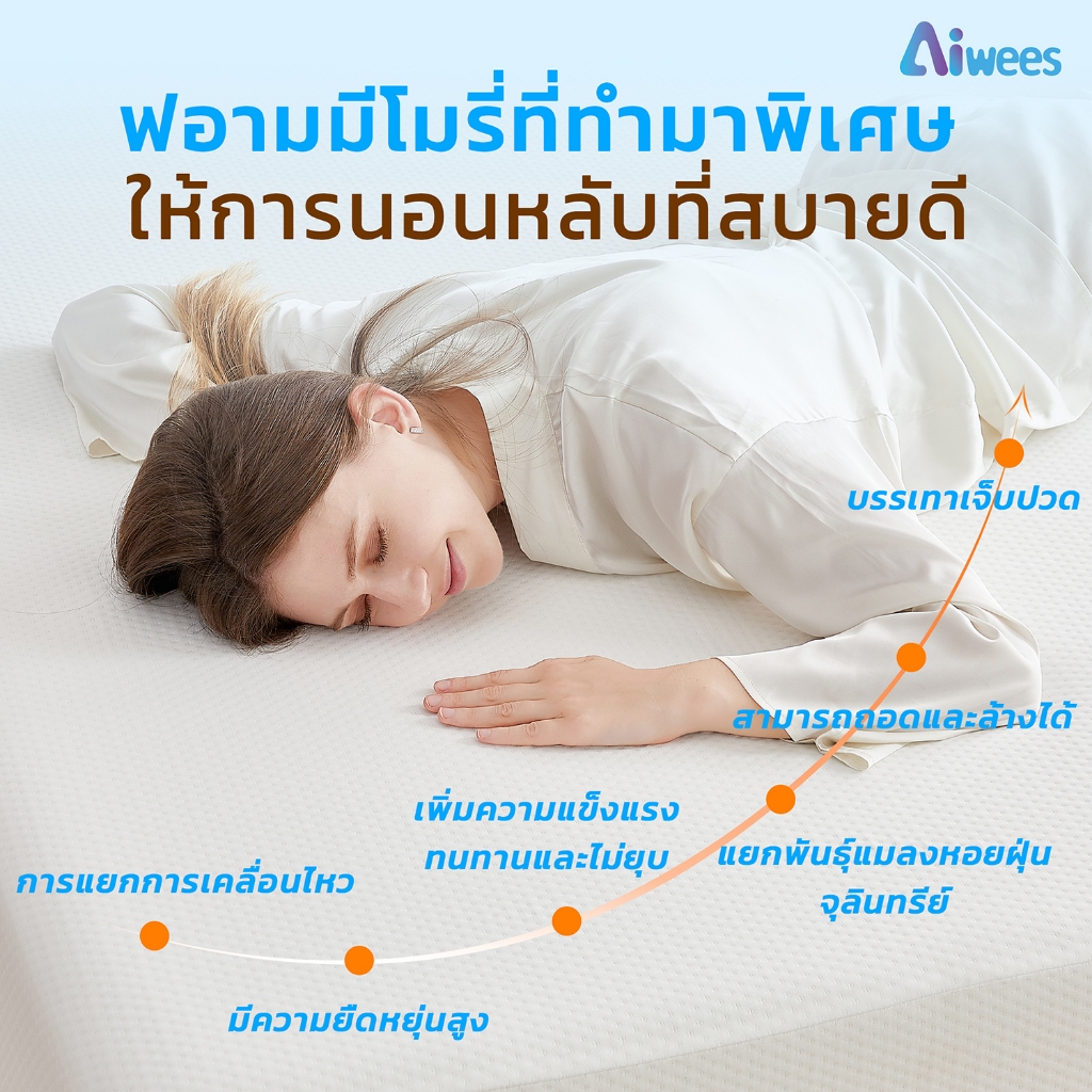 Aiwees ที่นอน ที่นอนเมมโมรี่โฟม เกรดพรีเมียม ระบายอากาศได้ดี หลับสบาย รองรับสรีระได้ดี ลดอาการการปวดหลัง ขนาด ที่นอน 3.5