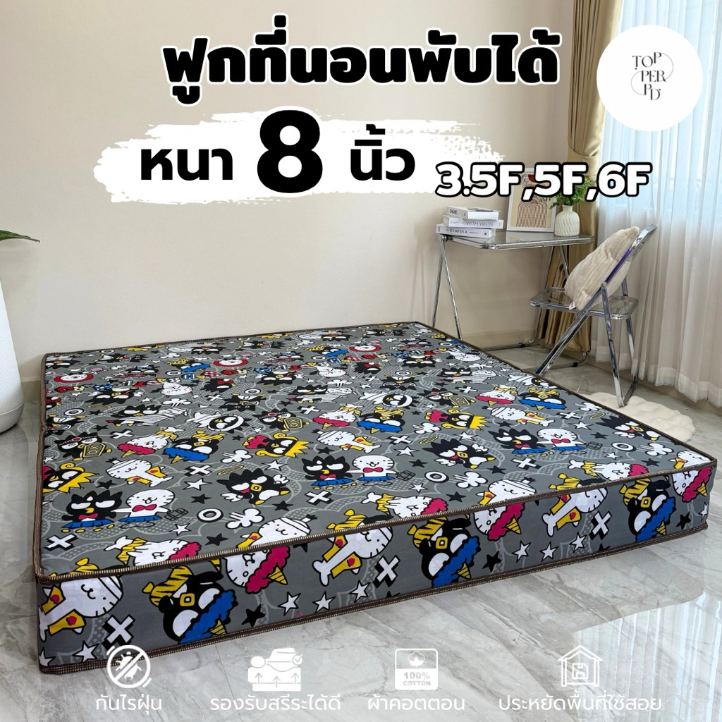 ฟูกที่นอนพับได้ หนา 8 นิ้ว ผ้าคอตตอน ไม่ยุบง่าย ไม่ปวดหลัง