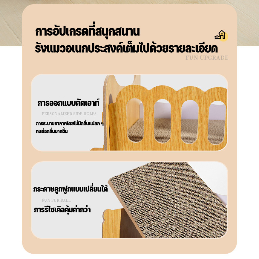 SKISOPGO พร้อมส่ง บ้านแมวกระดาษ ที่ลับเล็บแมว บ้านแมว 2 in 1 อเนกประสงค์ ทนต่อการสึกหรอ ของเล่นแมว