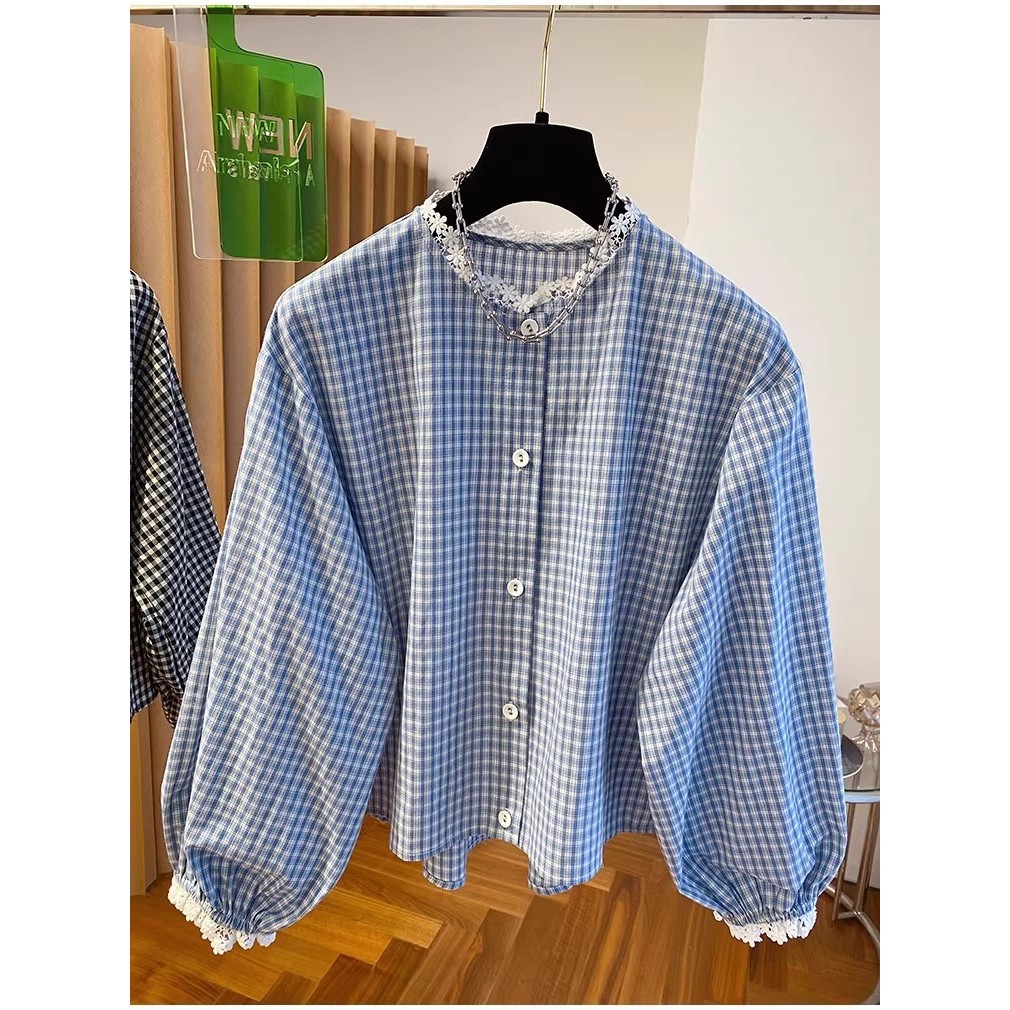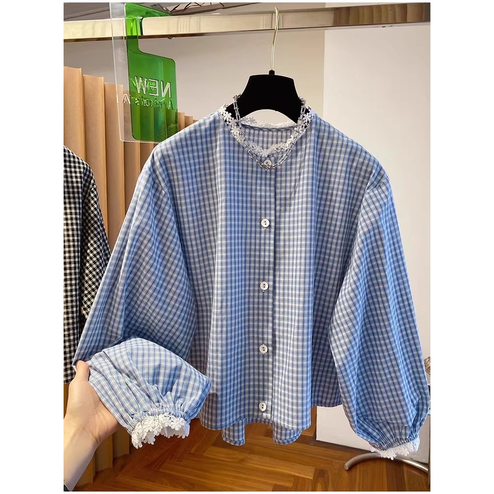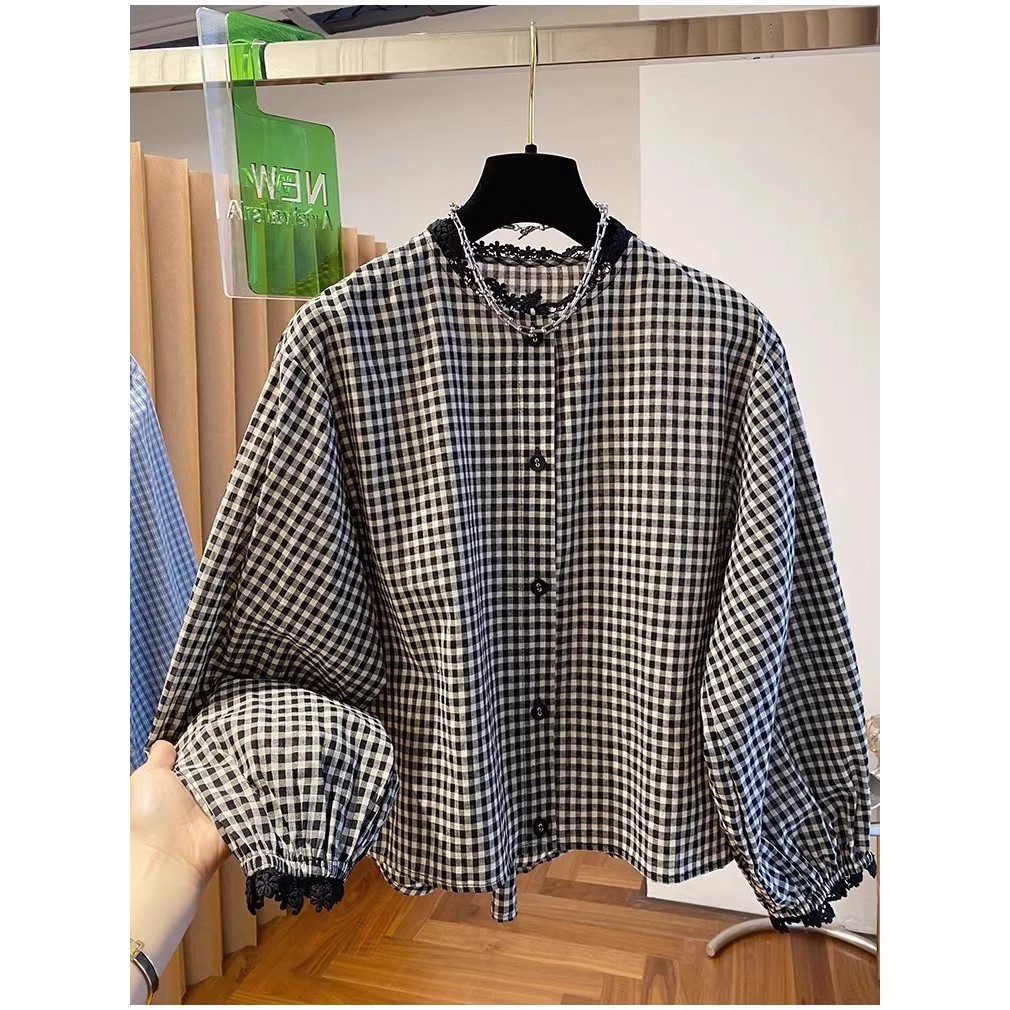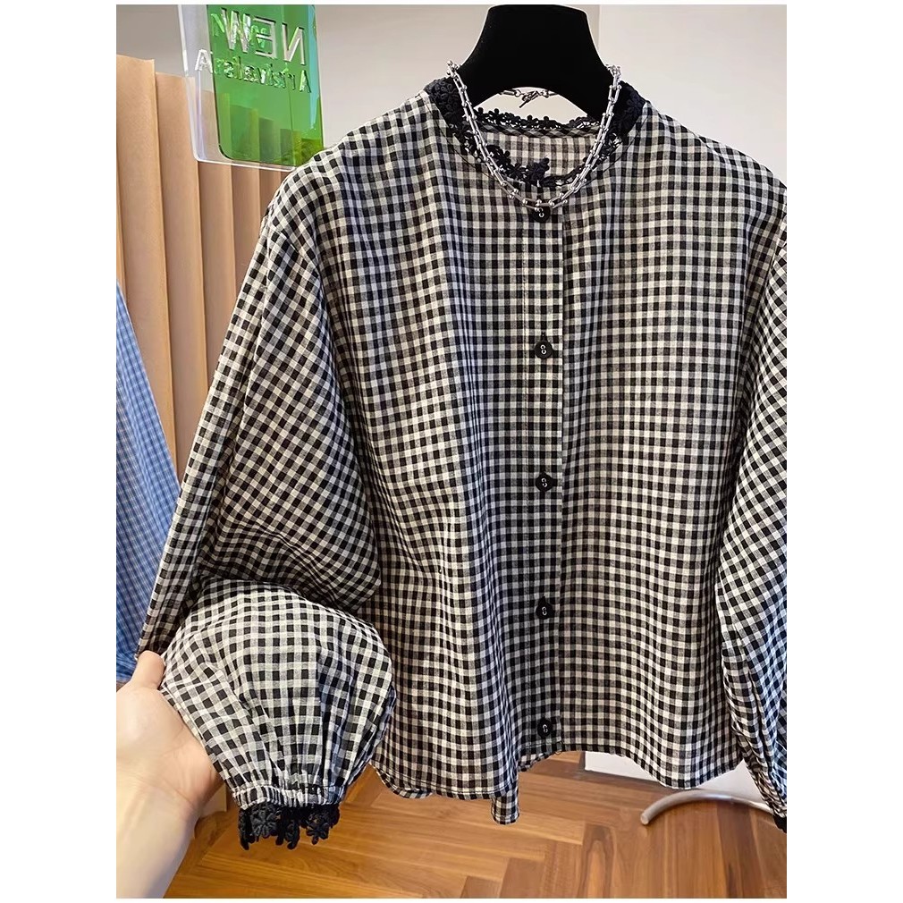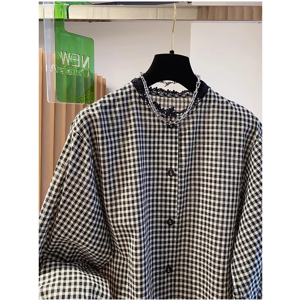 เสื้อลูกไม้แขนยาวสไตล์เกาหลี สีดำและขาว ขนาดหลวม เย็บอย่างสวยงามสำหรับผู้หญิง
