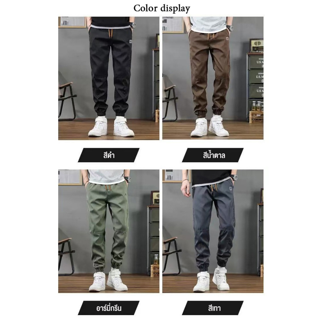 พร้อมส่งจากไทย✨กางเกงขายาวชาย สไตล์เกาหลี กางเกงลำลอง กางเกงคาร์โก ยางยืด ไซส์ M-5XL มี 4 สี #B19