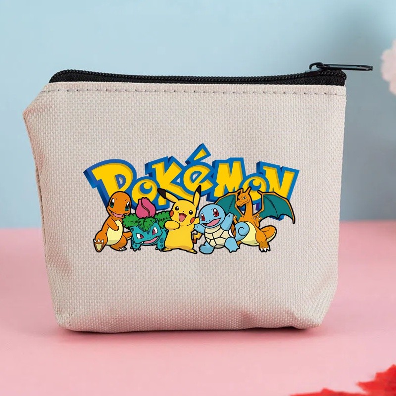 โปเกมอนการ์ตูนกระเป๋าสตางค์ผ้าใบกันน้ําเปลี่ยนถุงเก็บซิปเหรียญเปลี่ยนกระเป๋าสตางค์ของขวัญวันเกิดน่ารัก