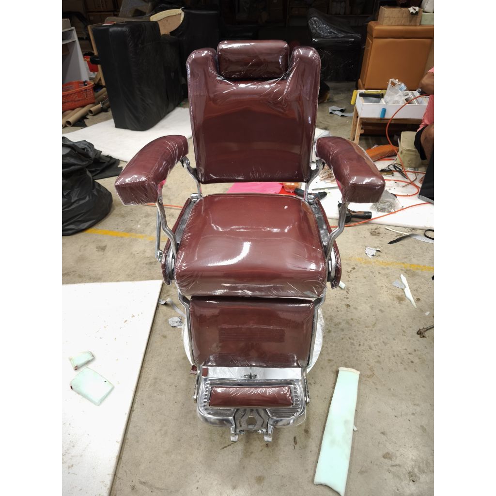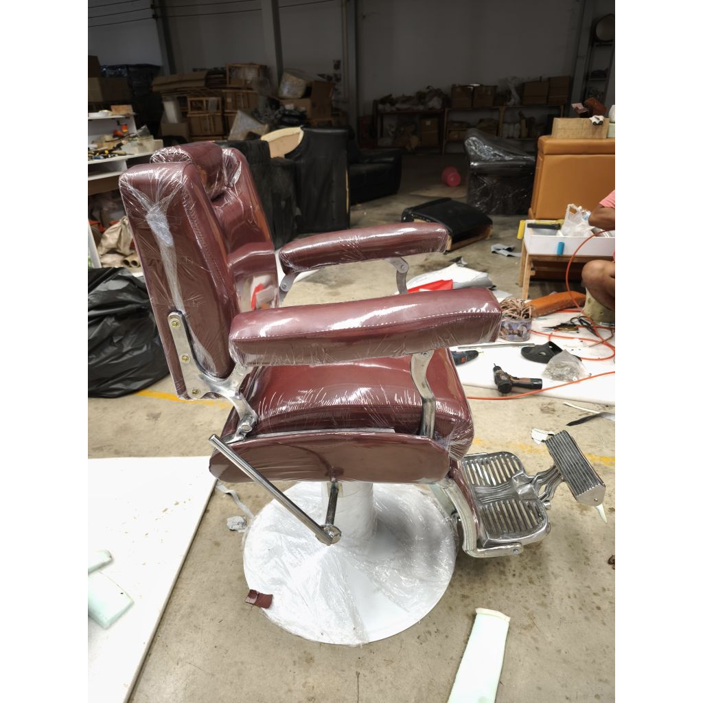 เก้าอี้บาร์เบอร์ 505 หนังสีน้ำตาลแดง เก้าอี้ตัดผมชาย เหมาะสำหรับร้านเสริมสวยร้านตัดผม