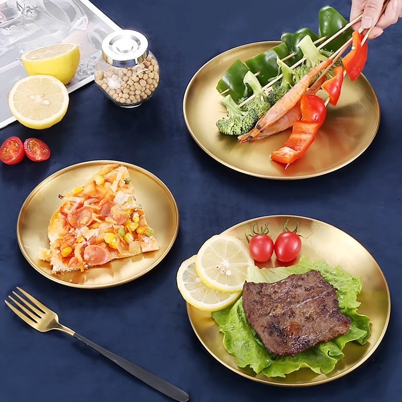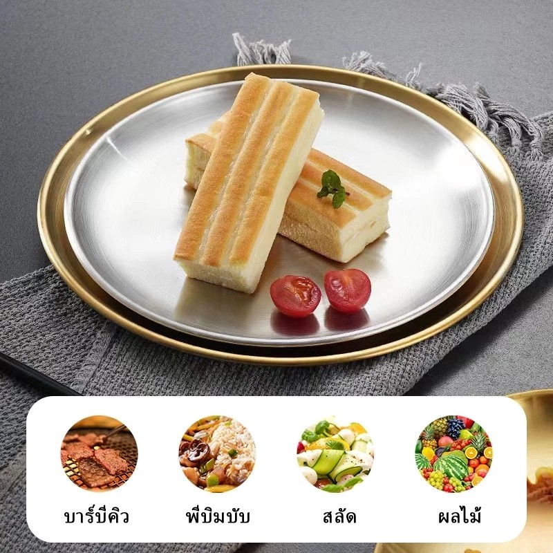 จานสแตนเลส สีเงิน/สีทอง