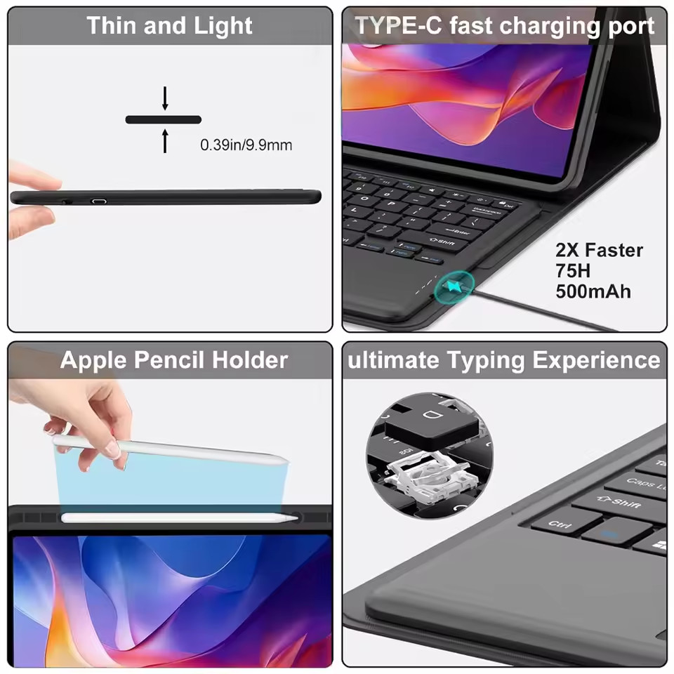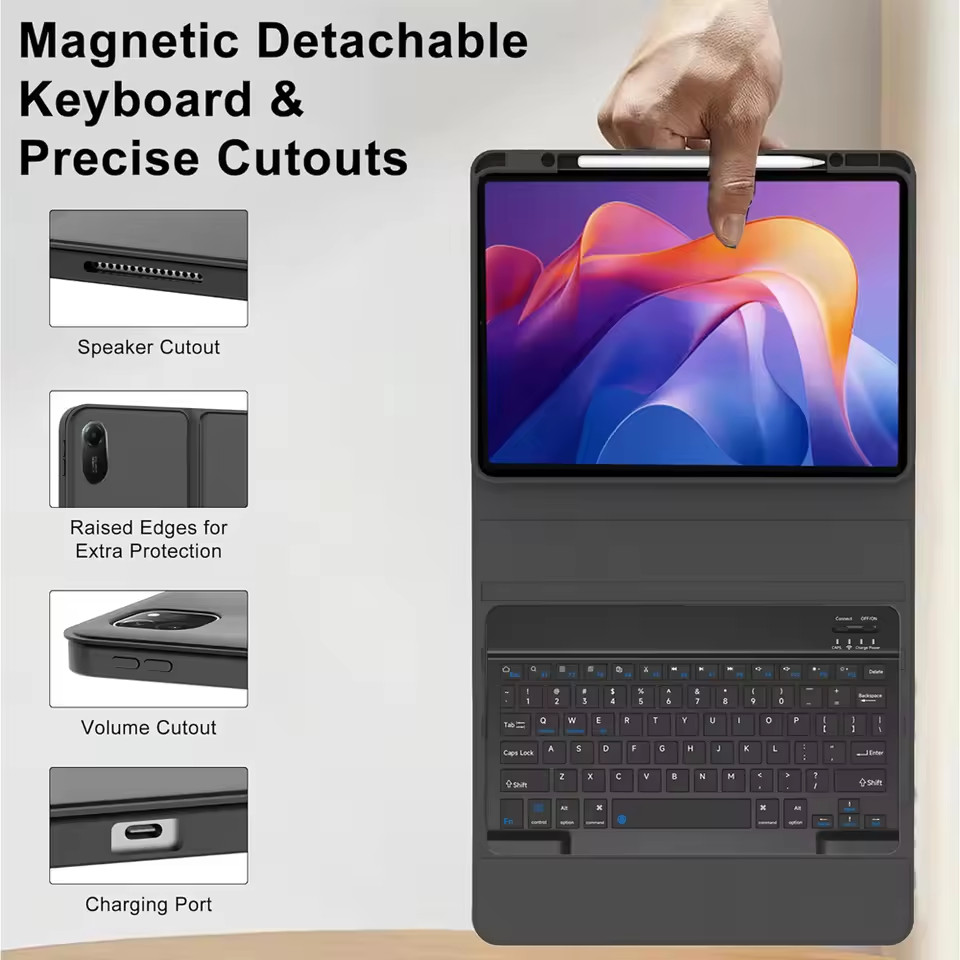 TBTIC สําหรับ Redmi Pad 2 11 นิ้ว 2025 Redmi Pad Pro 12.1 พร้อมคีย์บอร์ดเมาส์ชุดไร้สายบลูทูธผู้ถือปากกากันกระแทกเด็ก