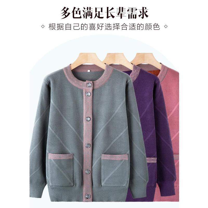 เสื้อกันหนาววัยทำงานและผู้สูงอายุ คาร์ดิแกนถักสำหรับแม่