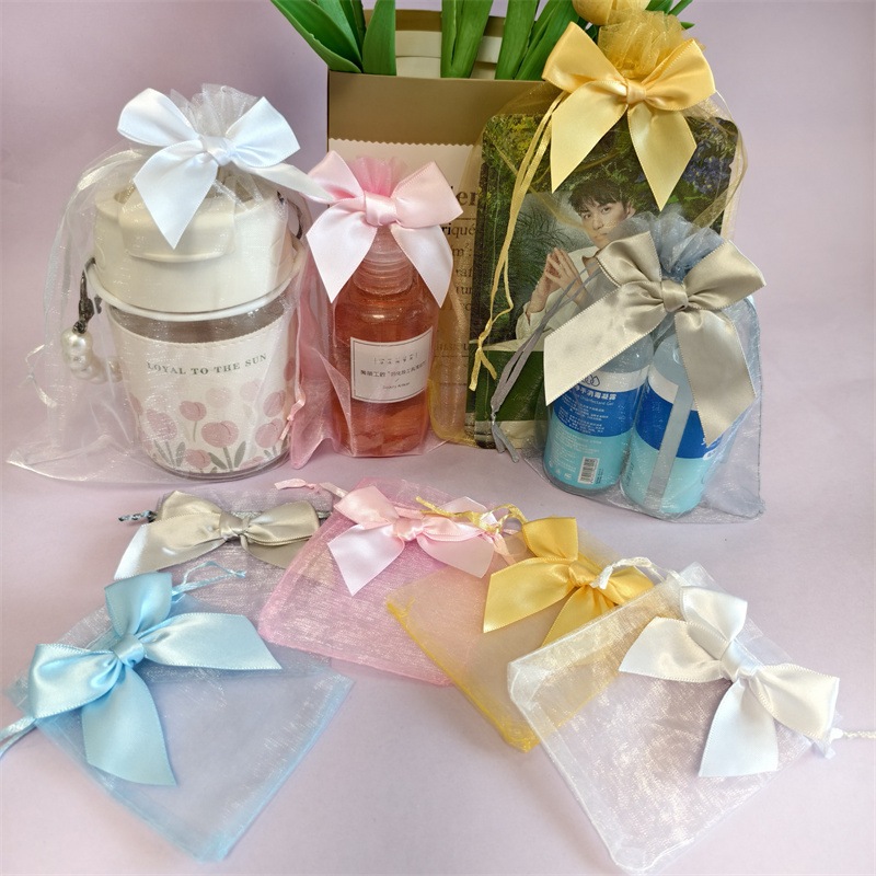 ถุงผ้าแก้ว ถุงตะข่าย หูรูด ใส่เครื่องประดับ พร้อมโบว์ (CH-236)