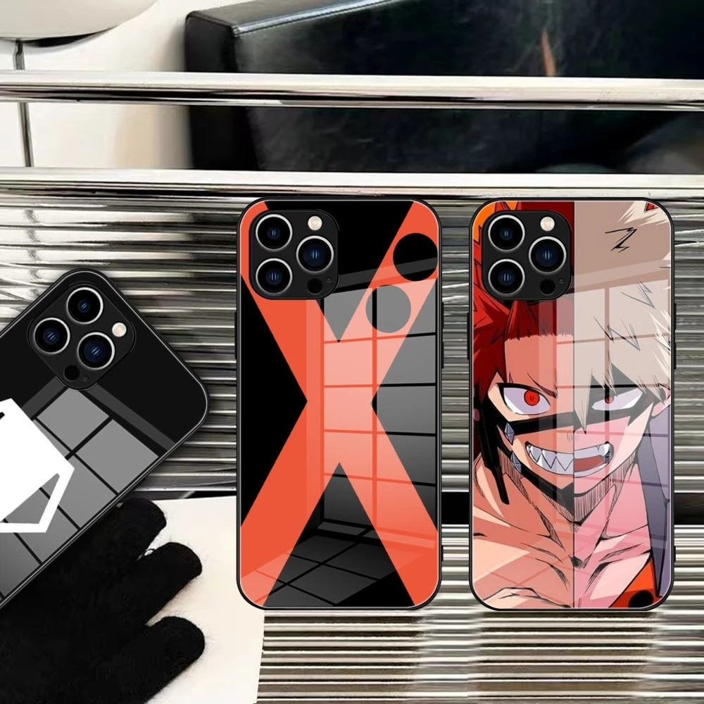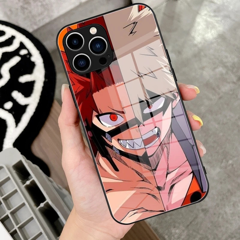 BK-1 My Hero Academia Bakugou Katsuki เคสโทรศัพท์กระจกนิรภัยสําหรับ IPhone 17,15 14 11 12 Pro Plus 13 Pro Samsung S24 Ultra S23 ครอบคลุม