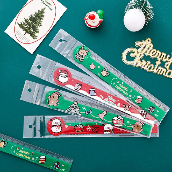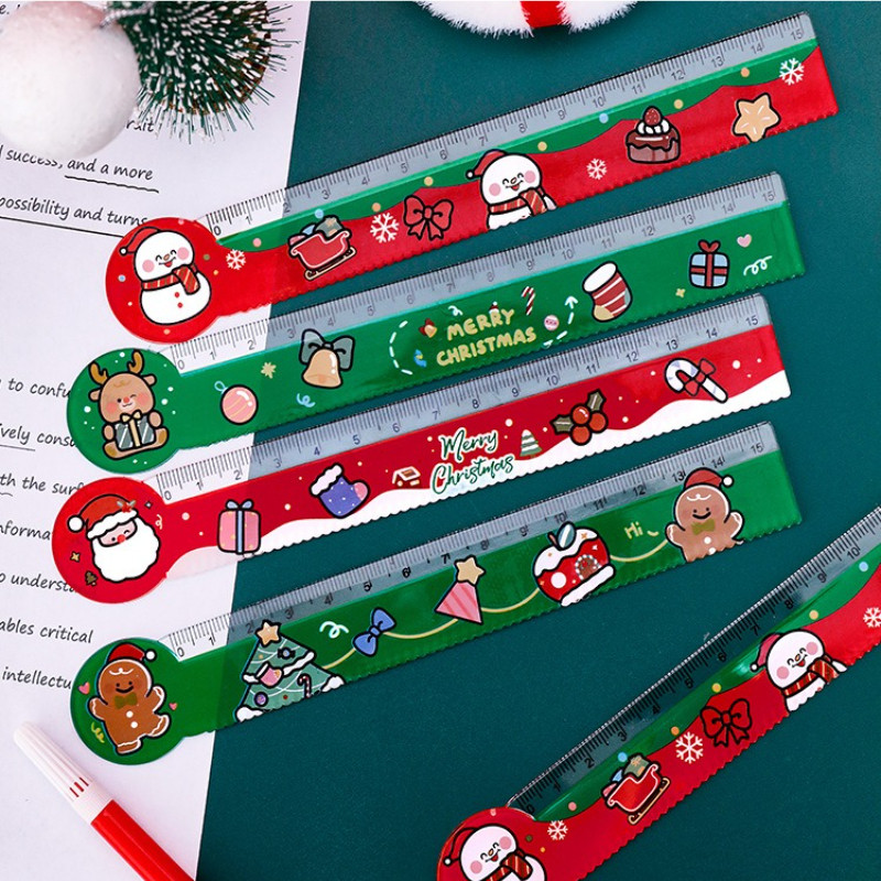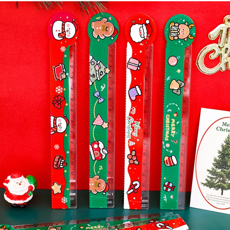 1ชิ้นการ์ตูนคริสต์มาสคนต่างด้าวไม้บรรทัดตรงนักเรียนน่ารักคริสต์มาสชุดคลื่นไม้บรรทัด