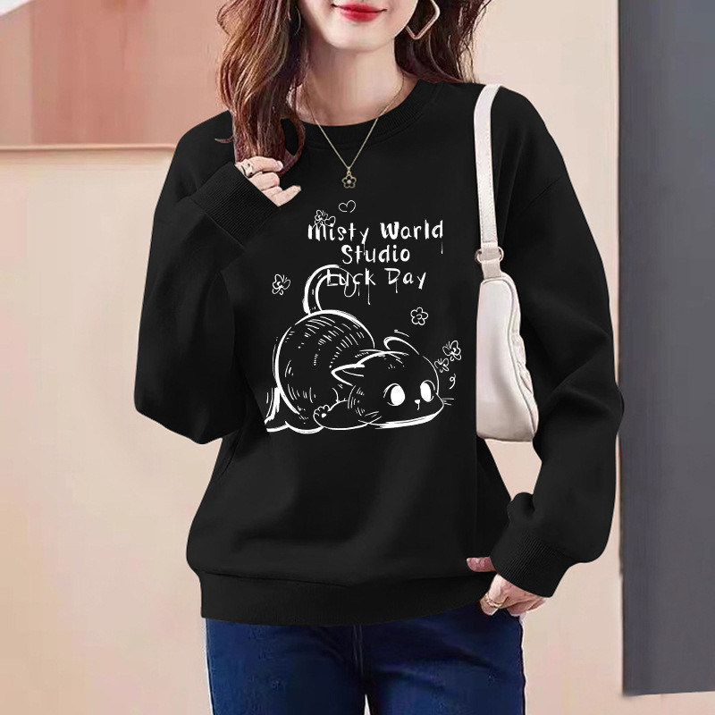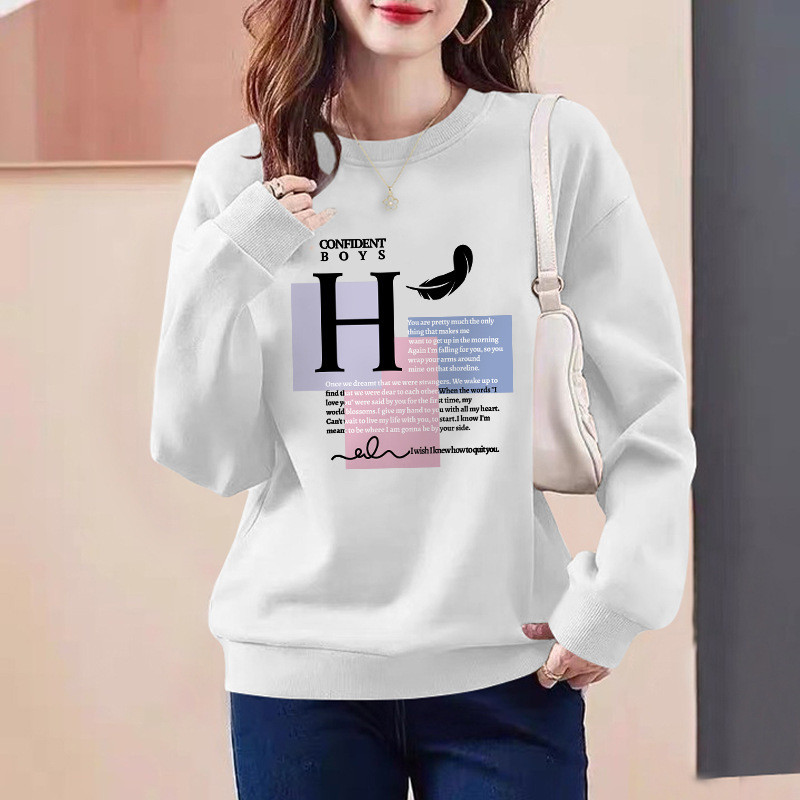 เสื้อสเวตเตอร์สำหรับผู้หญิง คอรอบคругสีขาว เหมาะกับฤดูใบไม้ร่วงและฤดูหนาว ทรงหลวม