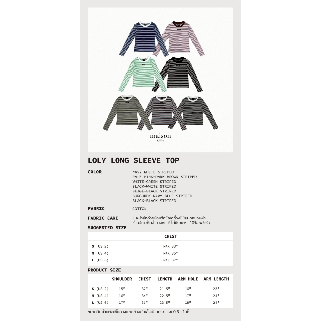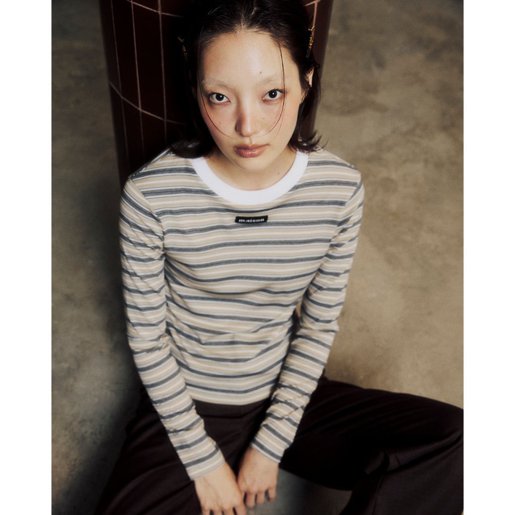 เสื้อแขนยาวสีใหม่ ดีไซน์โดดเด่นด้วยการจับคู่สีของขอบกุ๊นคอตัดกับตัวเสื้อสไตล์วินเทจ เป็นทรง Slim fit ที่เข้ารูปพอดีตัว ใส่แล้วสัดส่วนชัดแต่ไม่รัดจนเกินไป เพิ่มกิมมิคด้วยการติดป้ายทอ maison ตรงกลางอ