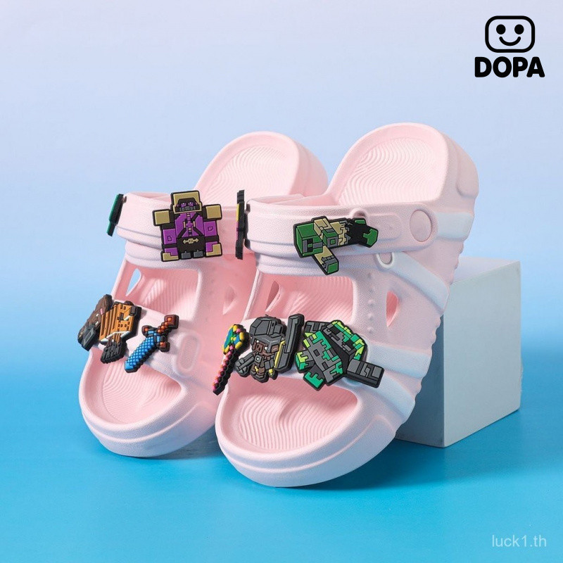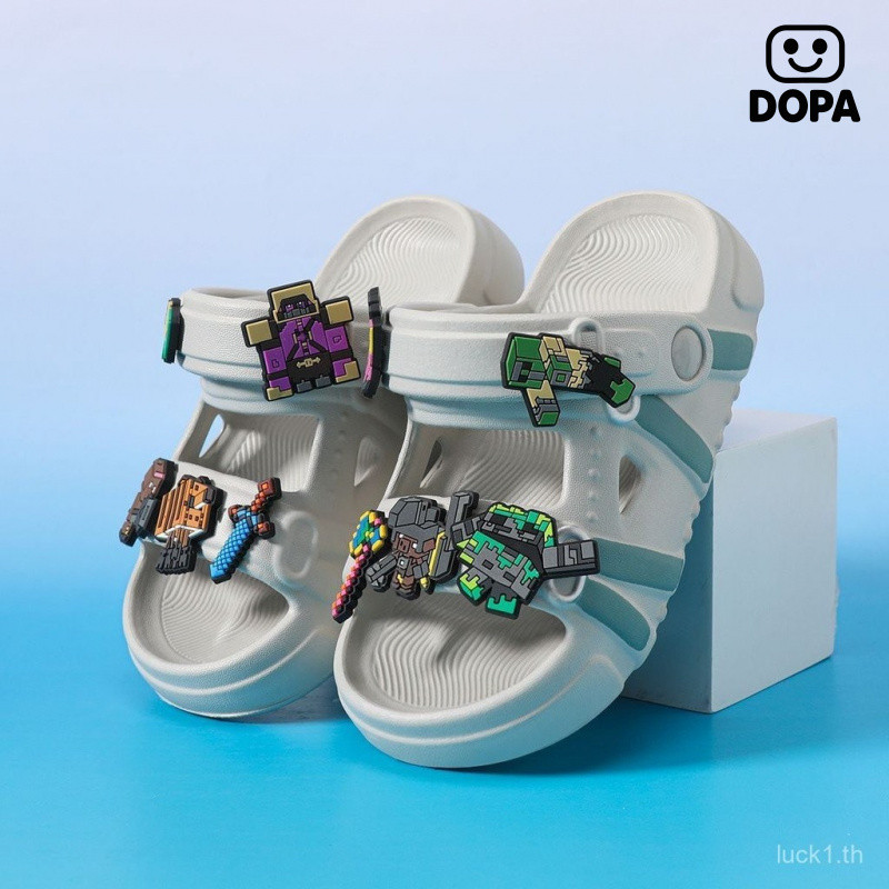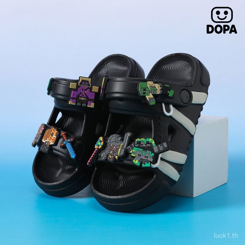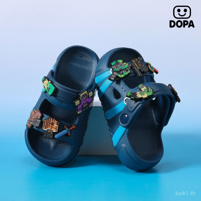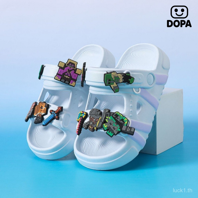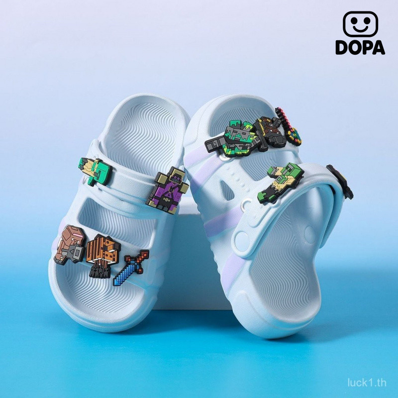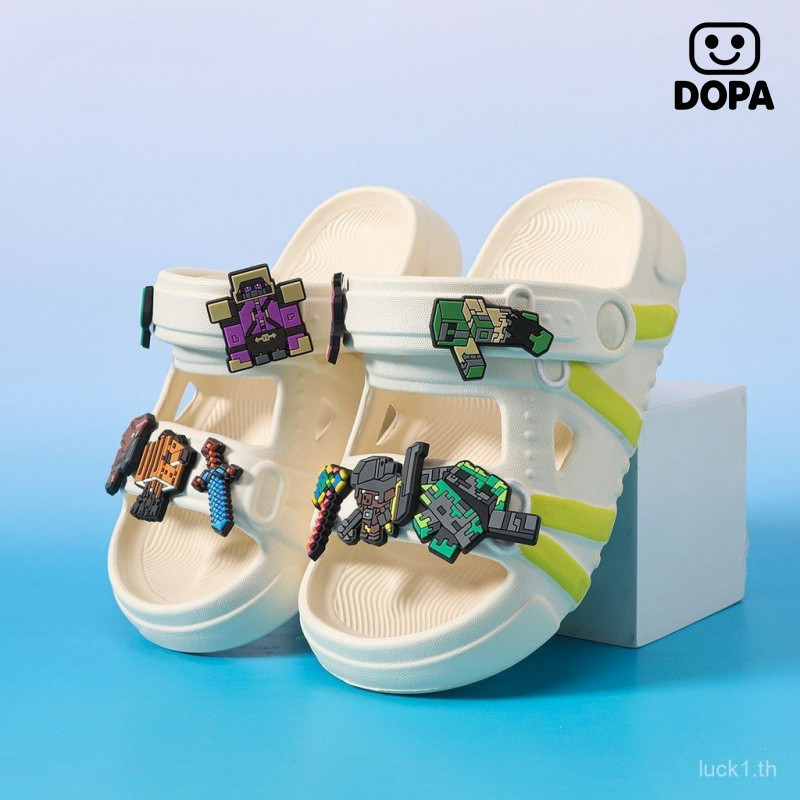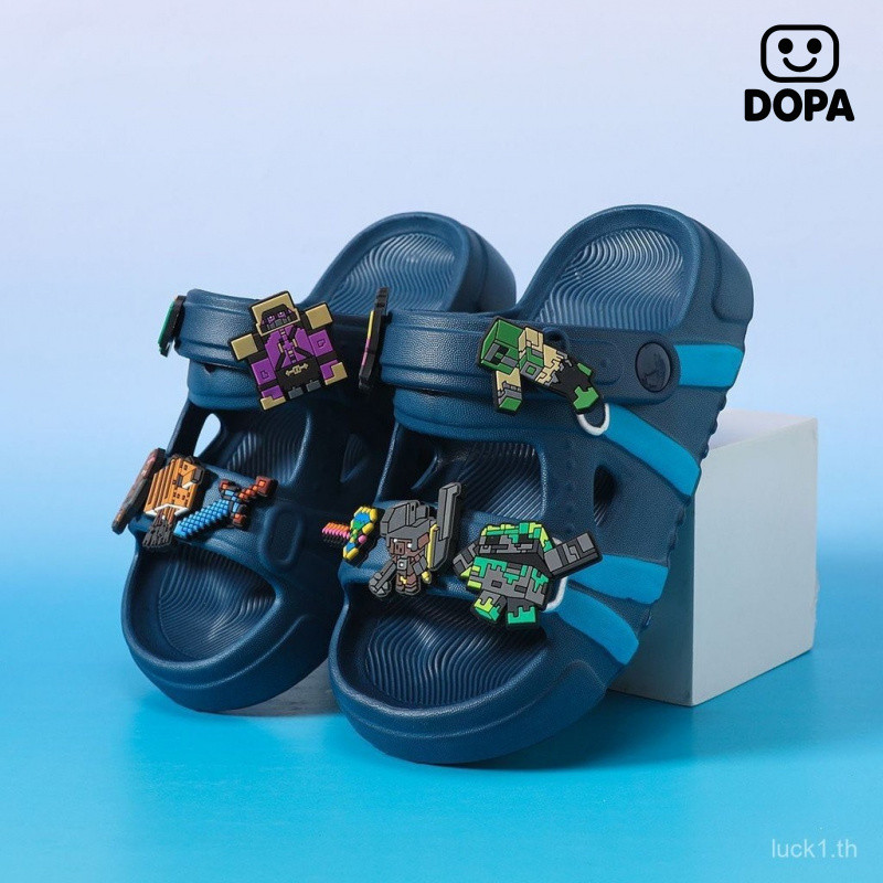 รองเท้าแตะเด็กสไตล์การ์ตูน Minecraft ฤดูร้อน ออกแบบพื้นรองเท้าแบบป้องกันเลื่อนลื่นและนุ่มสบาย สำหรับเด็กเล่นกลางแจ้ง