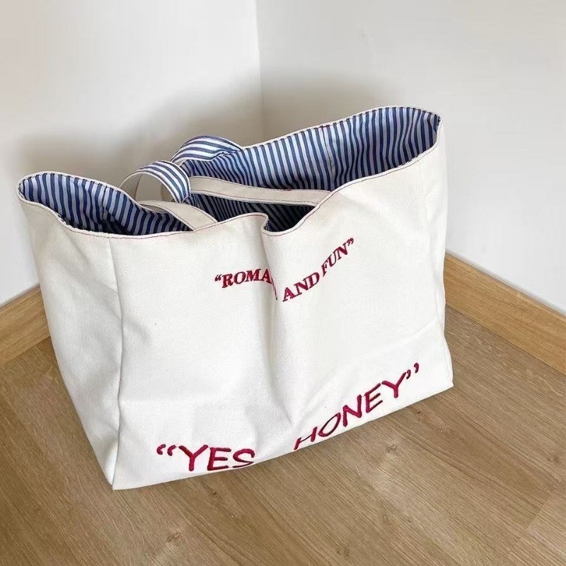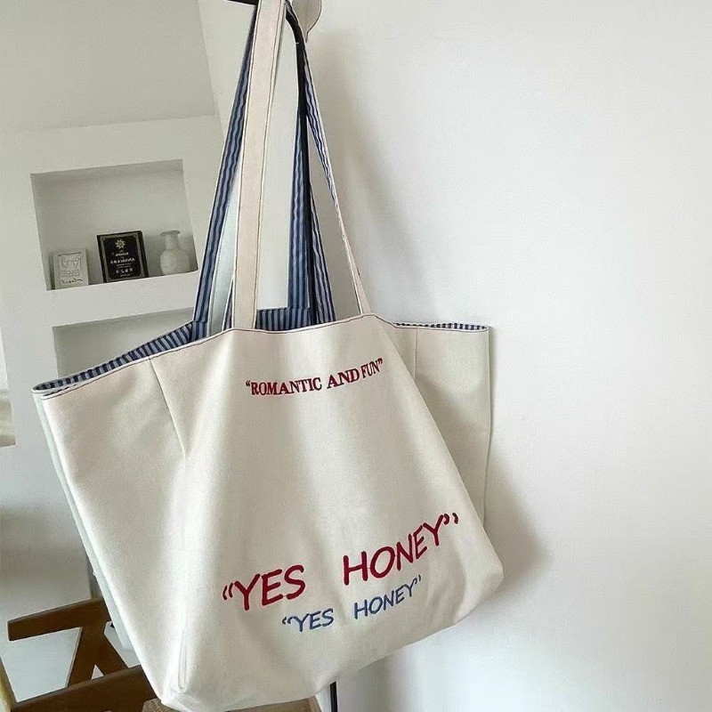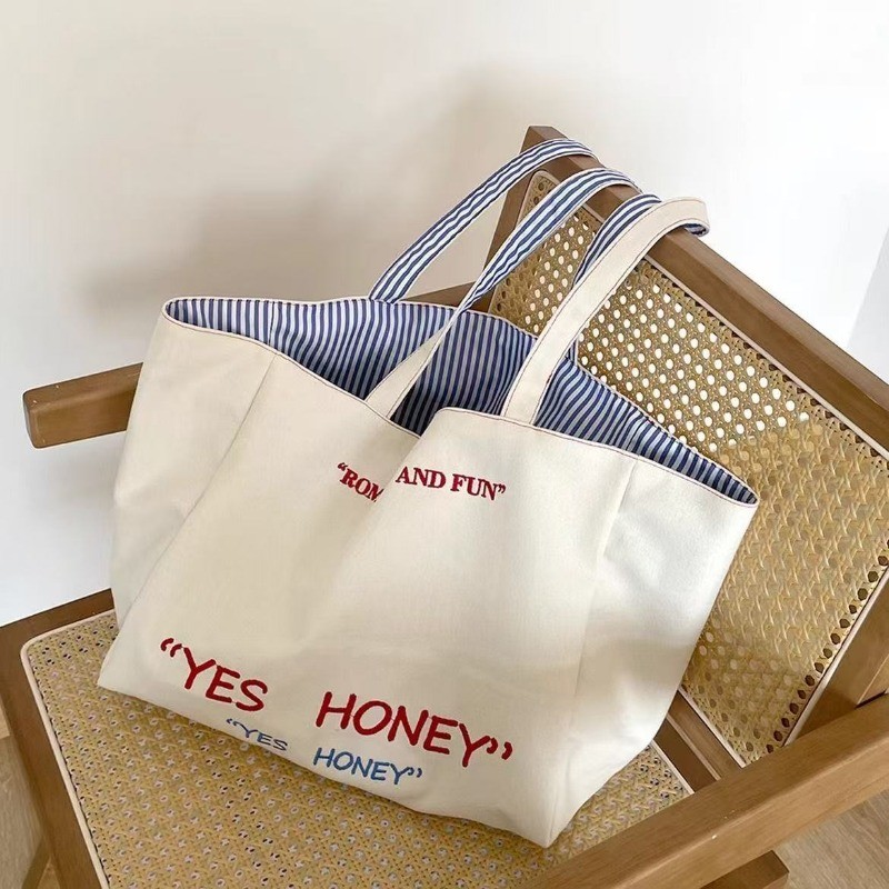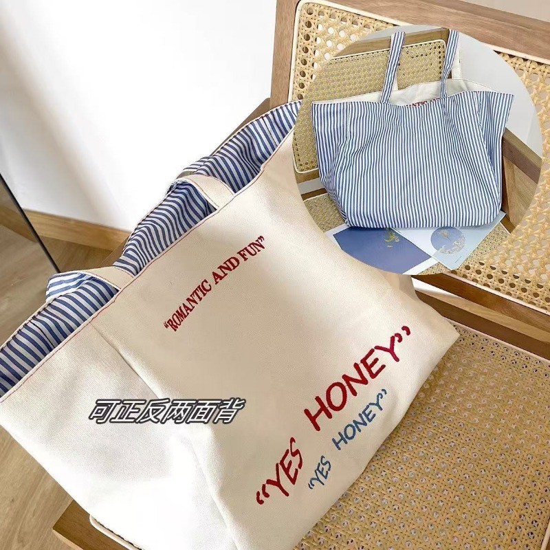 สไตล์เกาหลีขี้เกียจลมความจุขนาดใหญ่ลายสก๊อตกระเป๋าถือสองด้านแฟชั่นมูลค่าสูงบุคลิกภาพอารมณ์ที่เรียบง่ายสันทนาการตัวอักษรเย็บปักถักร้อยไหล่กระเ