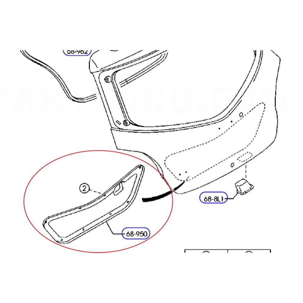 SKU-A852(1ชุด8ตัว)พุกพลาสติกยึดแผ่นปิดฝากระโปรงท้ายด้านใน MAZDA 2 GEN1 (2007-2014)