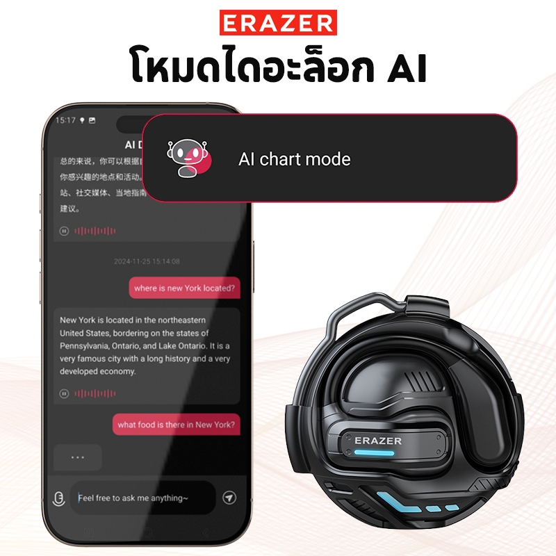 Lenovo ERAZER X8 หูฟังบลูทูธ หูฟังแปลภาษา AI Bluetooth 5.4 ความหน่วงต่ำ เสียงสเตอริโอ HiFi HD Call แปลภาษาแบบเรียลไทม์ 134 ภาษา หูฟังไร้สาย