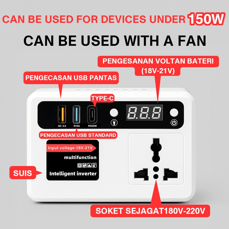 XUMTOM Powerbanks 150W AC socket อินเวอร์เตอร์ ไร้สาย Inverter แปลงไฟ หม้อแปลงไฟ 12V to 220V สำหรับคอนเสิร์ต/การเดินทาง