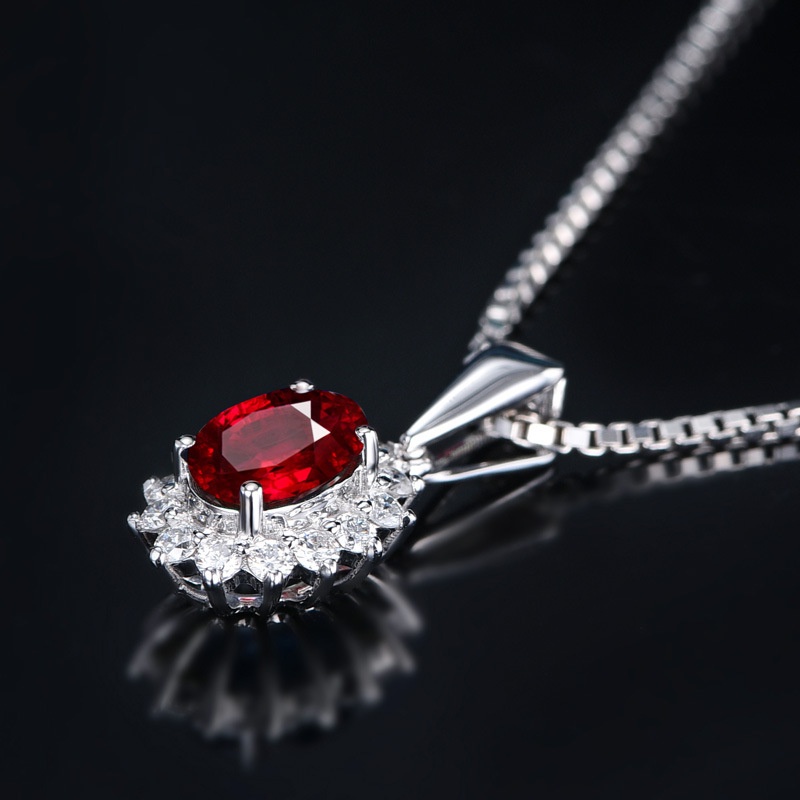 สร้อยคอจี้เพชรเต็มทับทิมฝังแฟชั่น