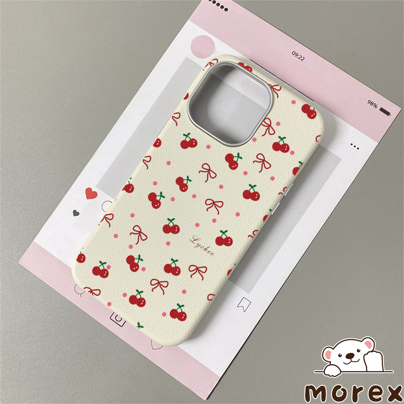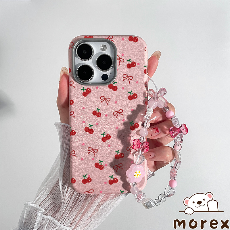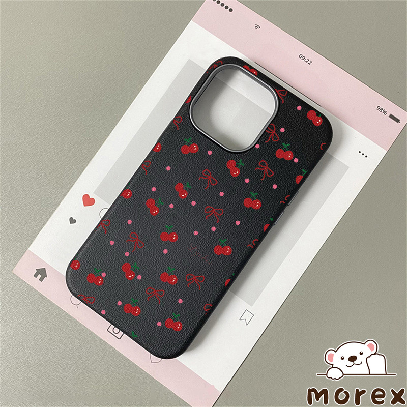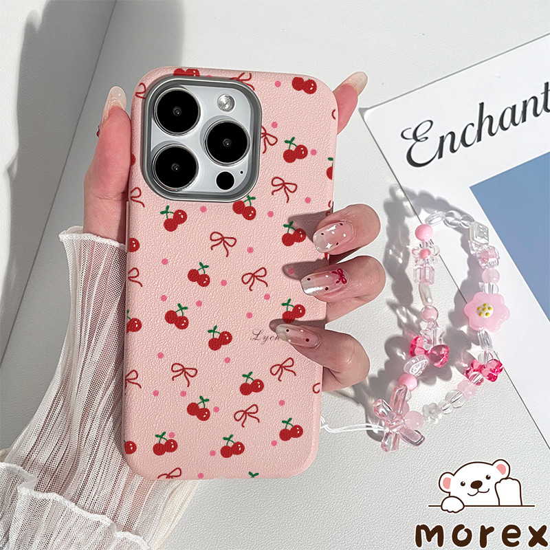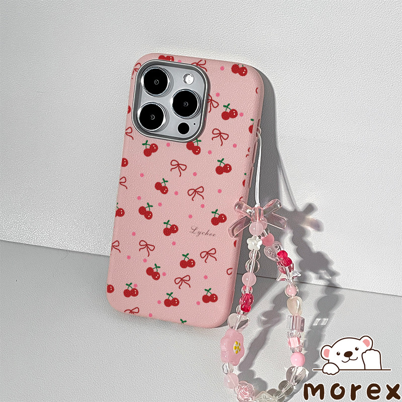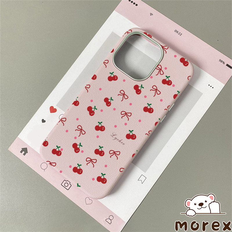 เคสไอโฟน 11 16 สำหรับ IPhone 15 13 11 16 14 12 ProMax 15 14 16 6 6S Plus XR XS X ปกหนังลายจุดสีชมพูเชอร์รี่น่ารัก