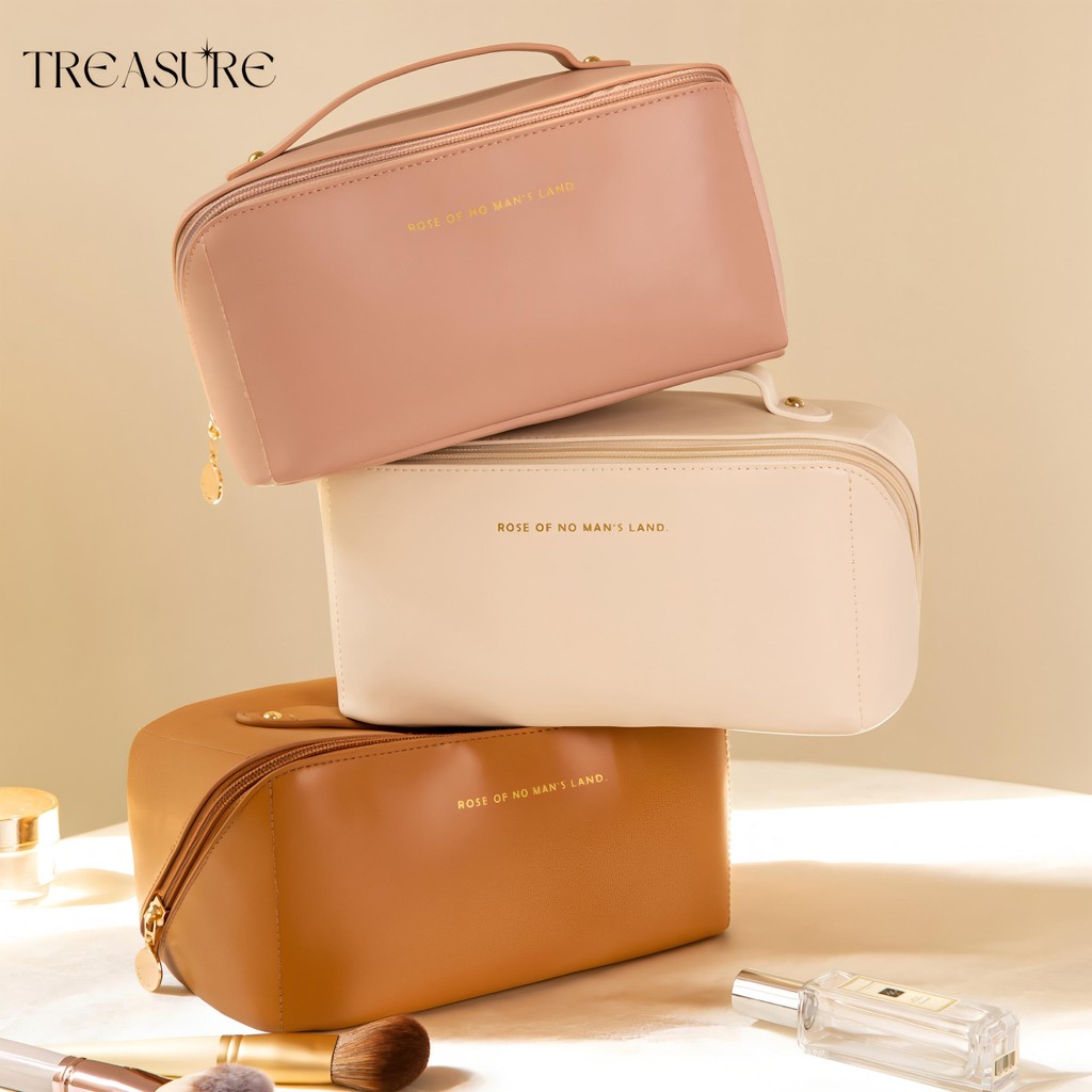 กระเป๋าเครื่องสำอางหนัง กระเป๋าเครื่องพกพาสำหรับเดินทางความจุขนาดใหญ่