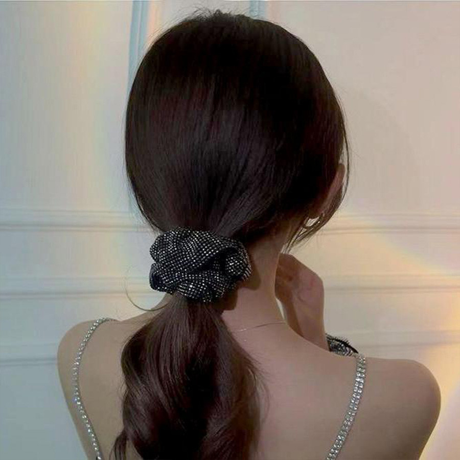 ยางรัดผมหางม้าปีกกว้างตกแต่งคริสตอล สไตล์ชินนิงสครันชี้ สวยงามสำหรับสไตล์ผมหลากหลายแบบ