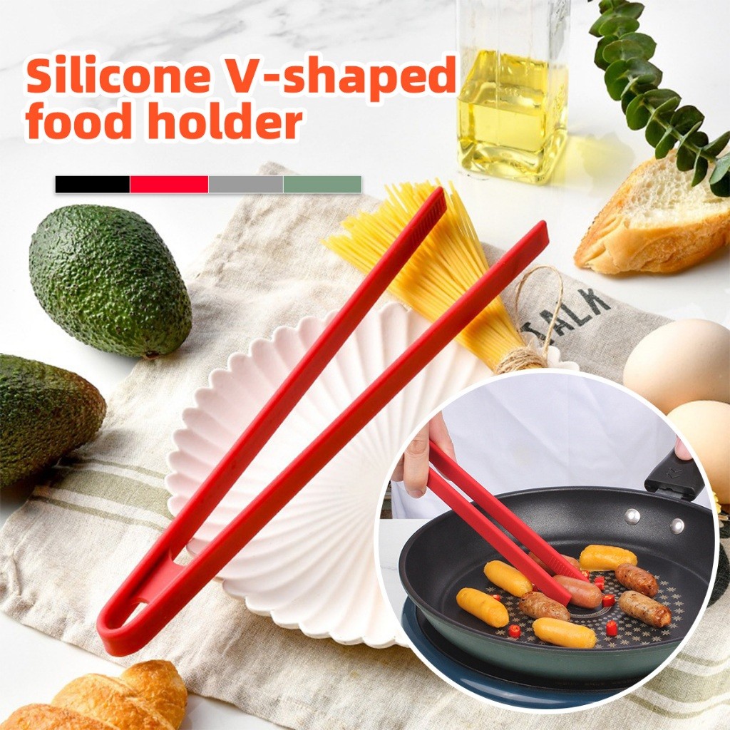 คูปองสุดคุ้ม! ที่คีบอาหารพลาสติกซิลิโคน ที่คีบเนื้อย่าง ทนความร้อนได้ รูปทรงV มัลติฟังก์ชั่น