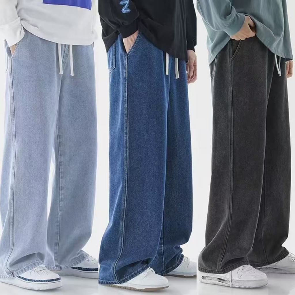 [ราคาลดล้างสต็อก] กางเกงยีนส์ทรงตรงลำลองคลาสสิกสำหรับผู้ชาย สีดำ สีเทา สีน้ำเงิน กางเกงยีนส์ทรงสลิม กางเกงยีนส์เอวยางยืด กางเกงยีนส์ทรงหลวม กางเกงขายาว
