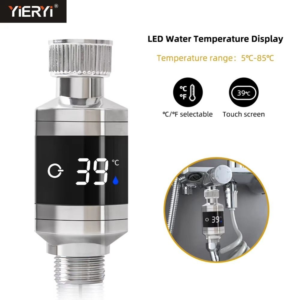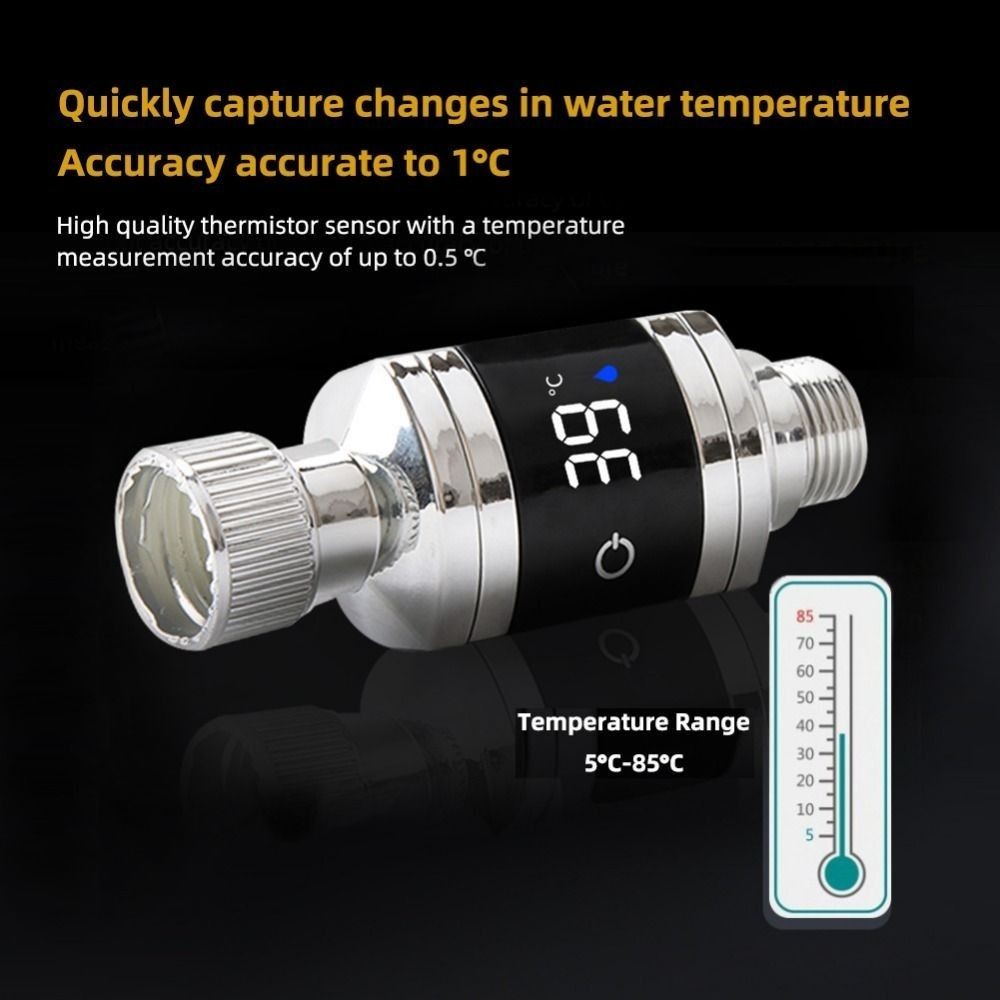 ALISOND1 เครื่องวัดอุณหภูมิน้ําฝักบัว, LED จอแสดงผลดิจิตอลมัลติฟังก์ชั่นเครื่องวัดอุณหภูมิน้ํา, ตัวบ่งชี้เครื่องมือ Silvery ABS ก๊อกน้ําความแม่นยําสูงเครื่องวัดอุณหภูมิน้ําในครัวเรือน