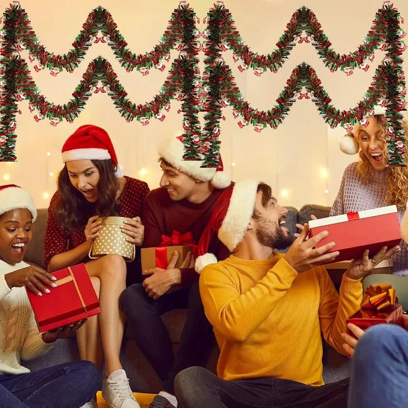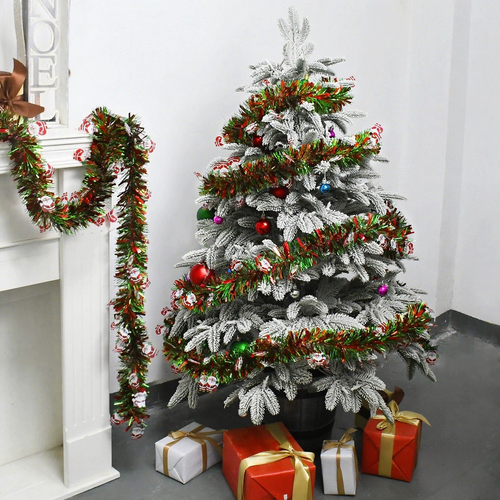 2M คริสต์มาสเกล็ดหิมะสีขาว Tinsel Garland คริสต์มาส Twist เพดานแขวนปีใหม่ Party Decor