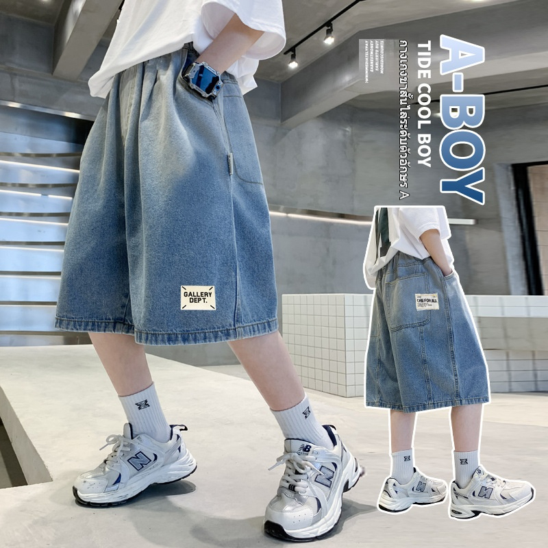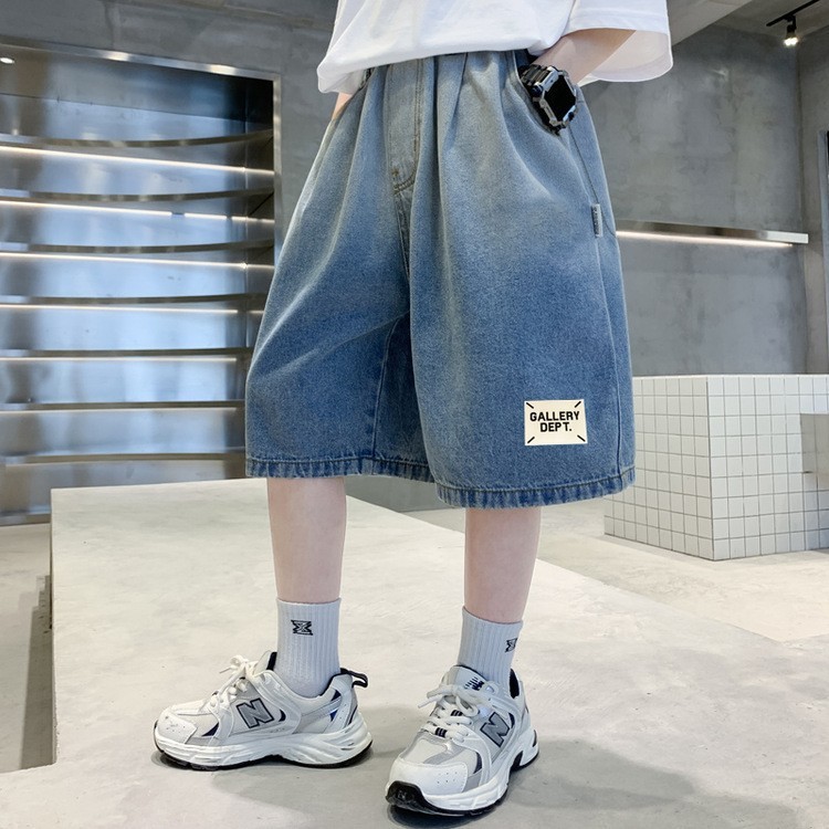 กางเกงขาสั้นเด็กผู้ชาย กางเกงยีนส์ขาสั้นสำหรับเด็ก ไล่ระดับสี ผ้านุ่ม กีฬา สันทนาการ ฤดูร้อน แฟชั่น เวอร์ชั่นเกาหลี 2025 ใหม่ 130-160cm