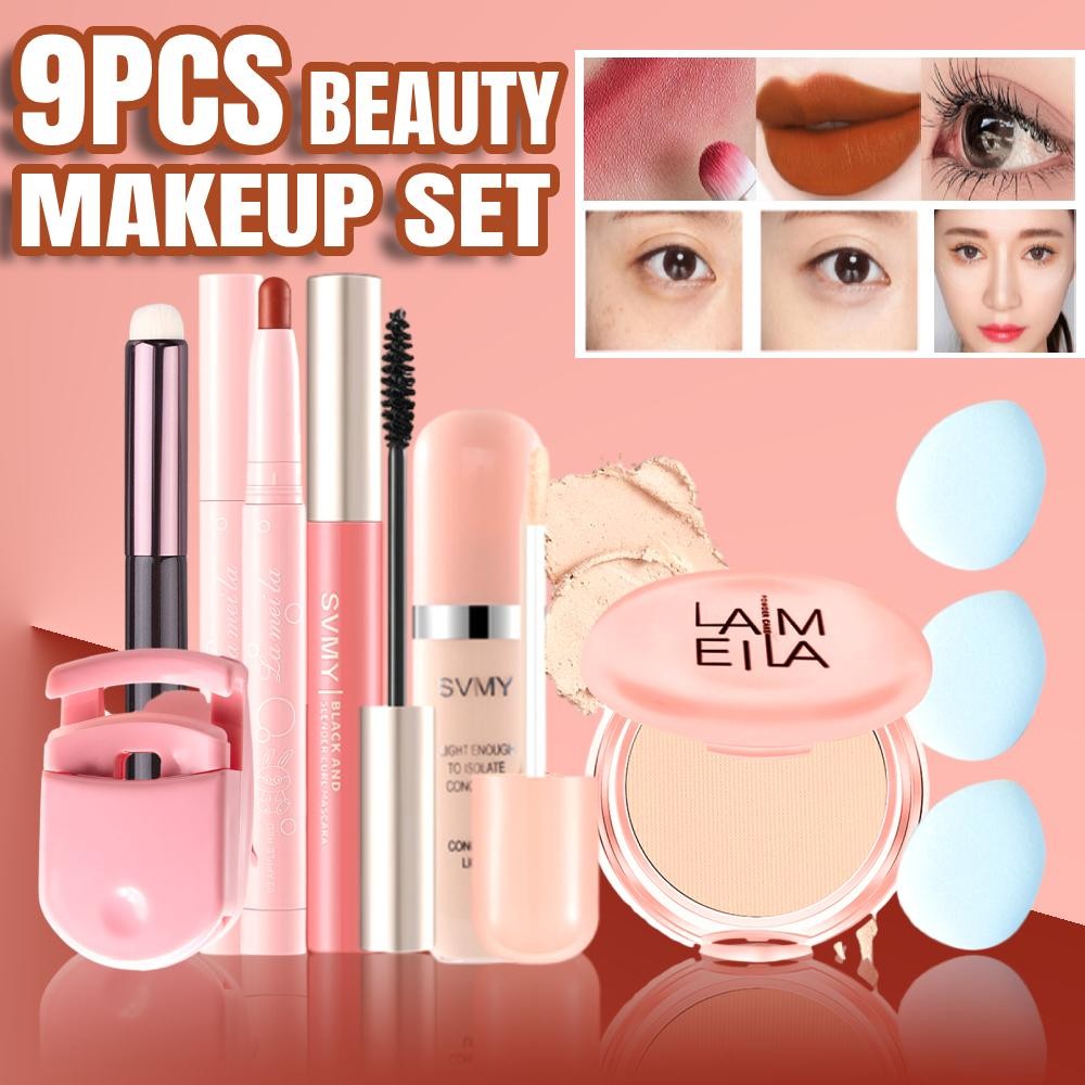 【COD】 [COD] ชุดแต่งหน้าเต็มหน้า คอนซีลเลอร์ แป้งแต่งหน้า + ลิปสติก + มาสคาร่า + อายไลเนอร์ + คอนซีลเลอร์ + พัฟทานิ้ว + บีบีครีม + แปรงทาปาก + ที่ดัดขนตา + อายแชโดว์ + คิ้ว + 【MysticHearth】