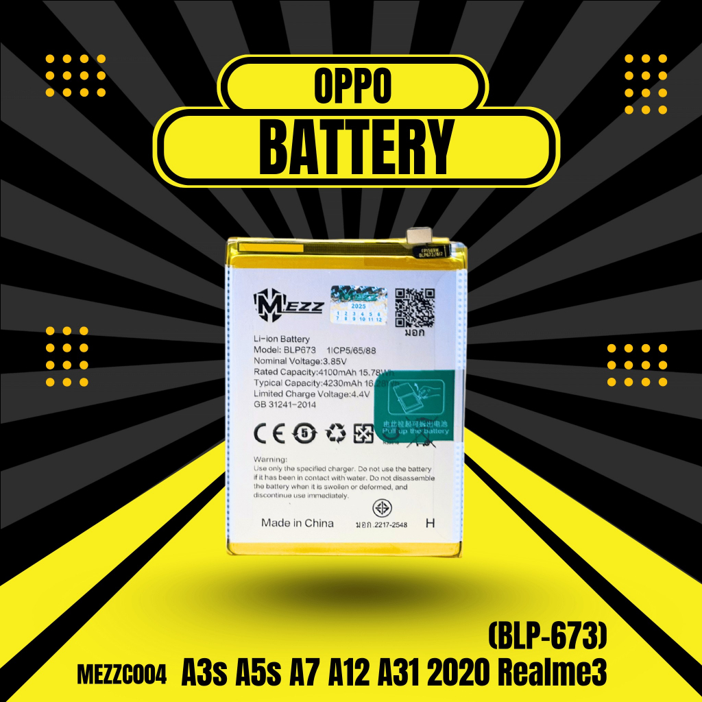 แบตเตอรี่ OPPO A3s/A5s/A7/A12/A31 2020/Realme3 (BLP-673) มอก.ยี่ห้อ(MEZZ)