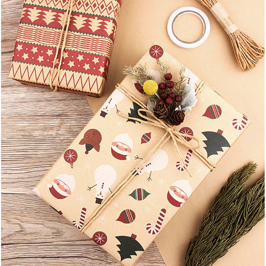 [จัดส่ง 3-5 วัน]กระดาษห่อคราฟท์คริสต์มาส 70×50 ซม. สําหรับของขวัญ | การออกแบบแผ่น 1/6 พร้อมรูปแบบวันหยุด, บรรจุภัณฑ์ ทําเอง สําหรับปีใหม่/งานแต่งงาน/ตกแต่งงานเลี้ยงวันเกิด