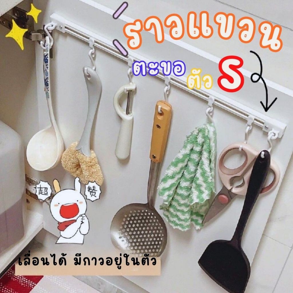 ราวแขวนอเนกประสงค์ ราวแขวนของในครัว รูปตัว S