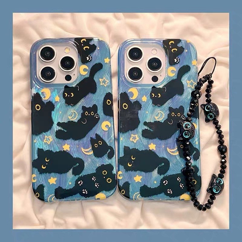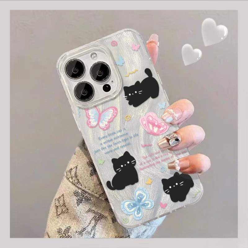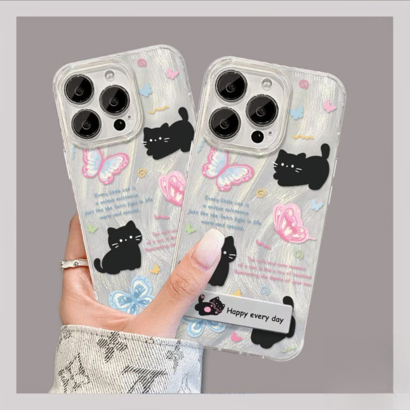 สร้อยข้อมือแมวดำตลกน่ารักนุ่ม เคสไอโฟน11 15 16 13 12 14 Pro Max 8Plus 7Plus XR 16 7 8 Plus 16 11 Pro X XS MAX SE 2020