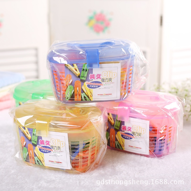 กิ๊บหนีบผ้า ที่หนีบผ้า ตัวหนีบผ้า ไม้หนีบผ้า A-Z กล่อง 26 ตัว สีสันสดใส สปริงแข็งแรง ทนทาน พลาสติก คุณภาพ