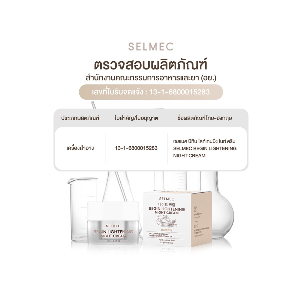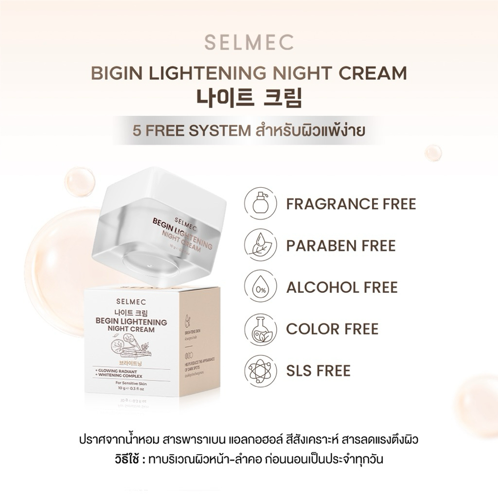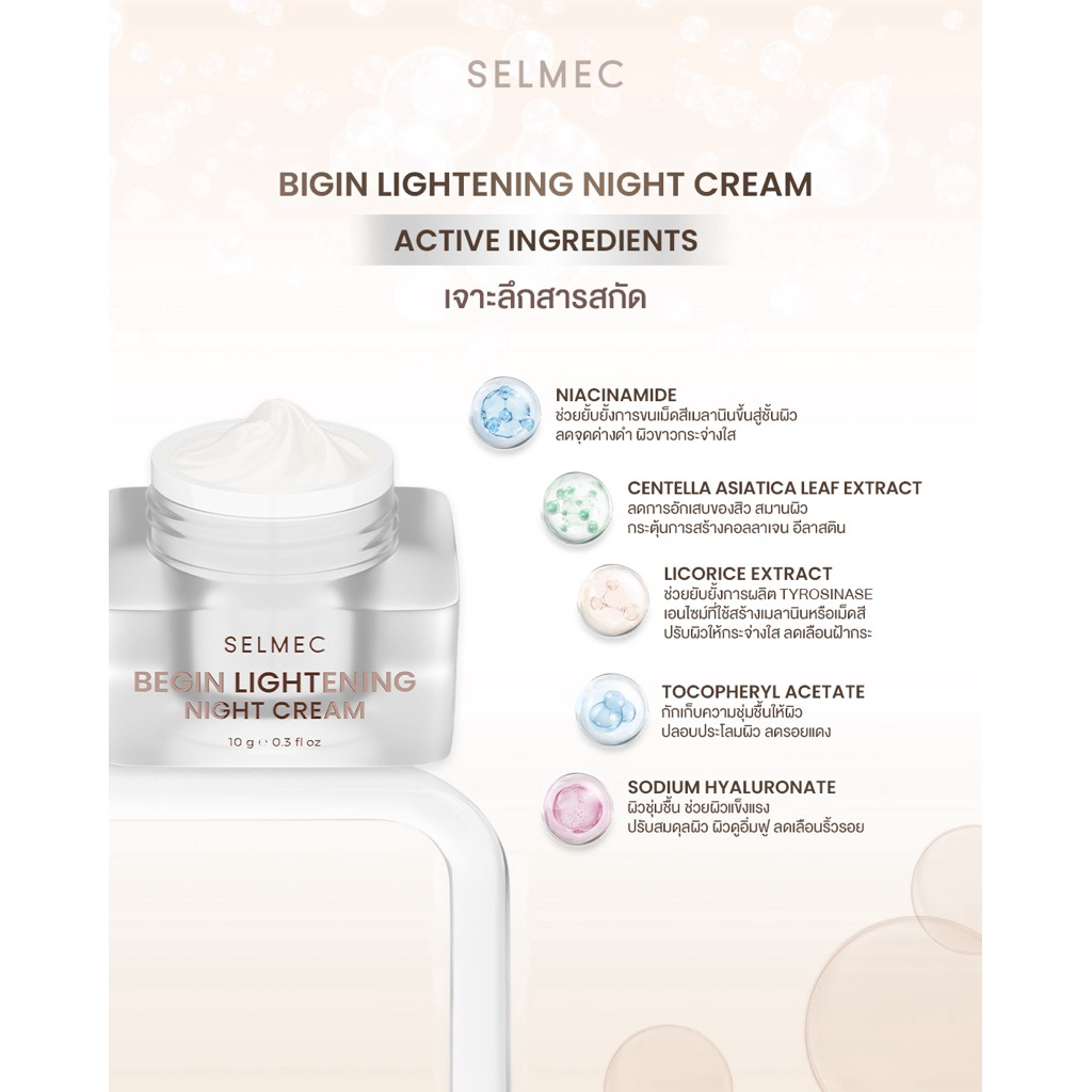 SELMEC ครีมบีกิ้นไลท์ BEGIN LIGHTENING NIGHT CREAM ครีมบำรุงผิวหน้า (สูตรใหม่)