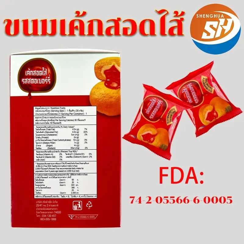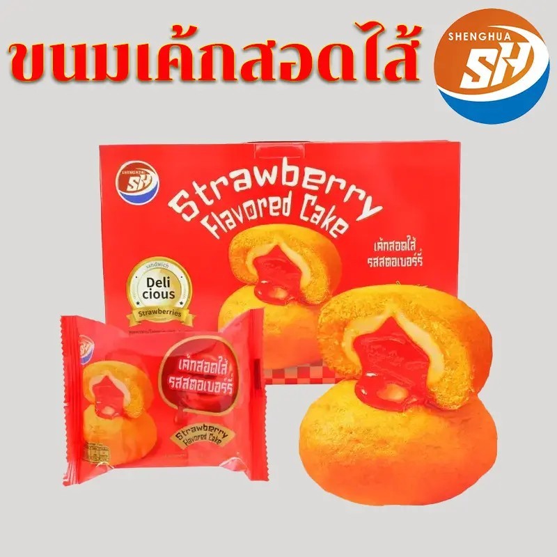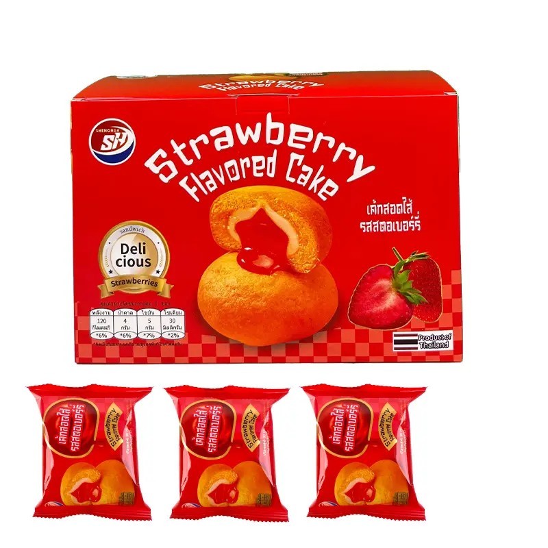 พร้อมส่ง ขนมเค้กสอดไส้ ขนมเค้กสอดไส้รสสตรอเบอร์รี่ หอมนุ่มอร่อยถูกใจ 1 กล่อง 12 ชิ้น#8859816000146