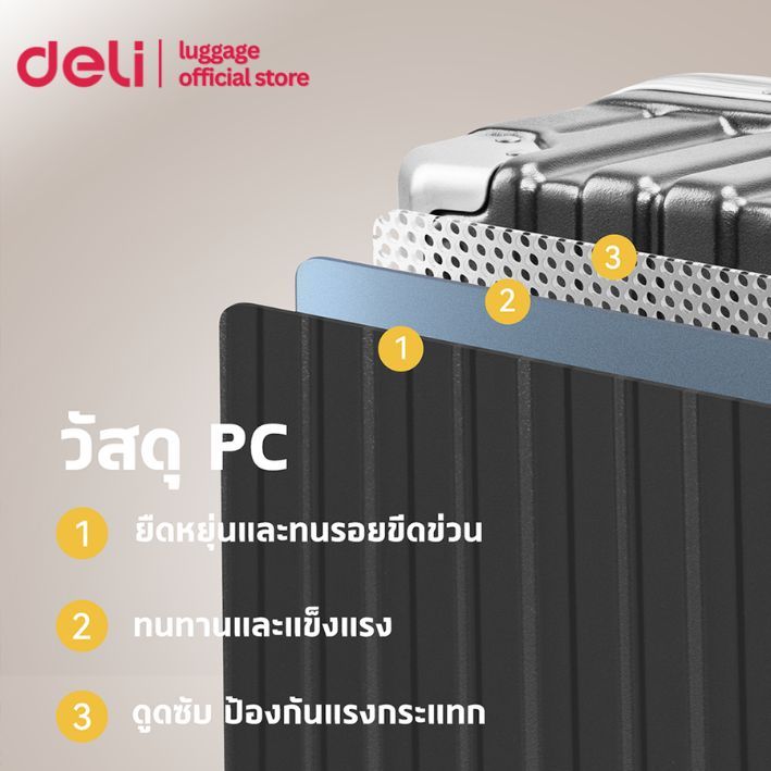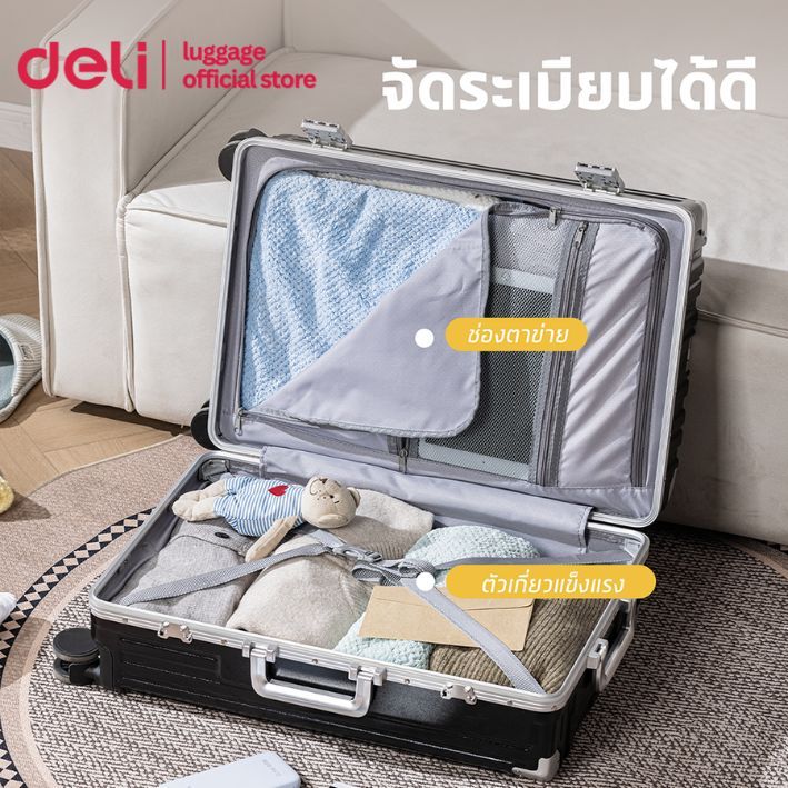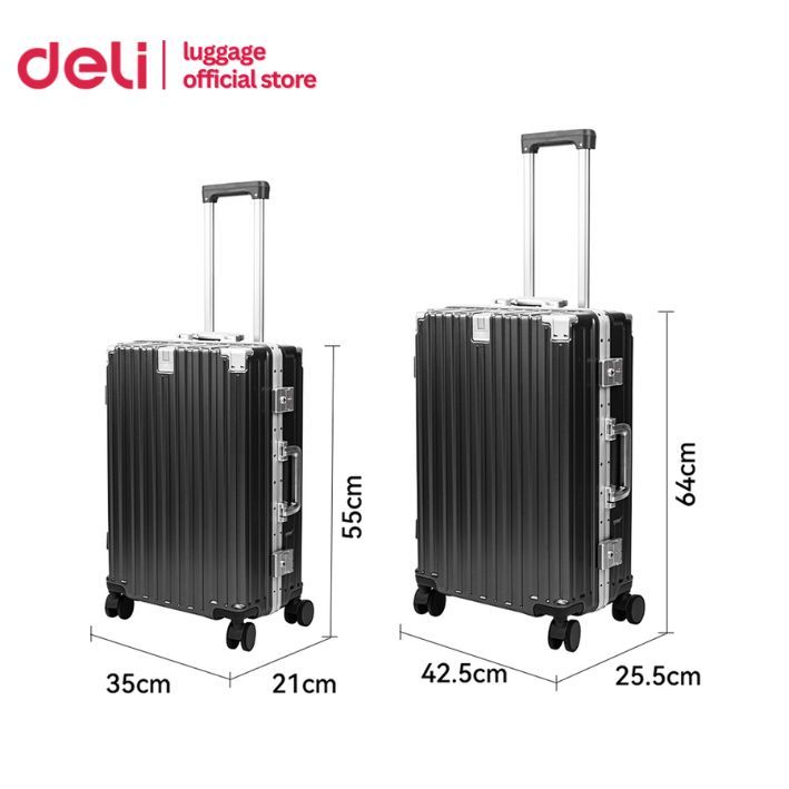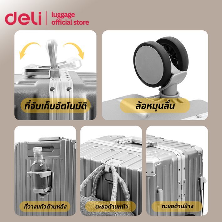 ②Deli กระเป๋าเดินทางอลูมิเนียม กระเป๋าเดินทางล้อลาก20/24นิ้ว ล้อหมุนได้360องศา รับประกัน1ปี Suitcase