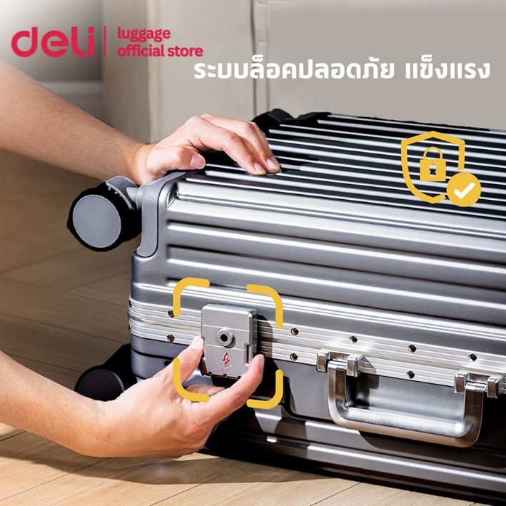 Deli กระเป๋าเดินทางอลูมิเนียม กระเป๋าเดินทางล้อลาก20/24นิ้ว ล้อหมุนได้360องศา รับประกัน1ปี Suitcase