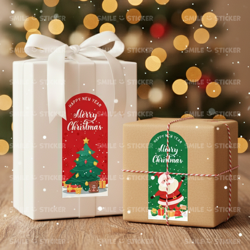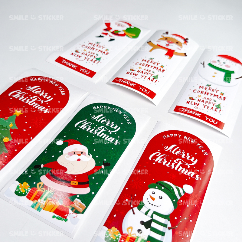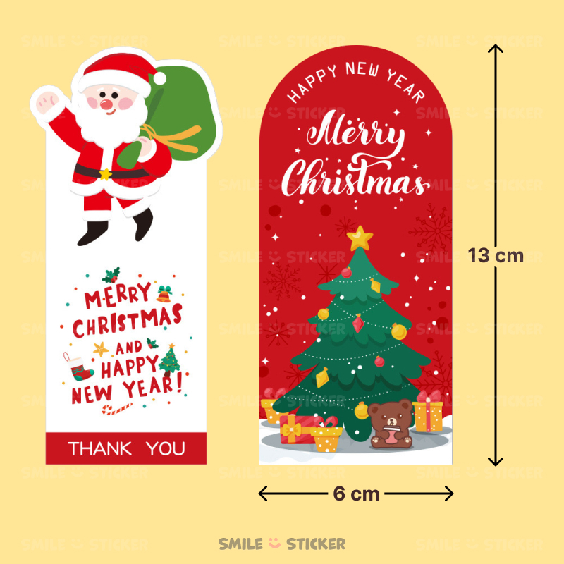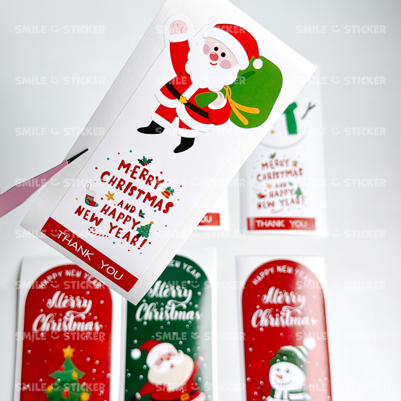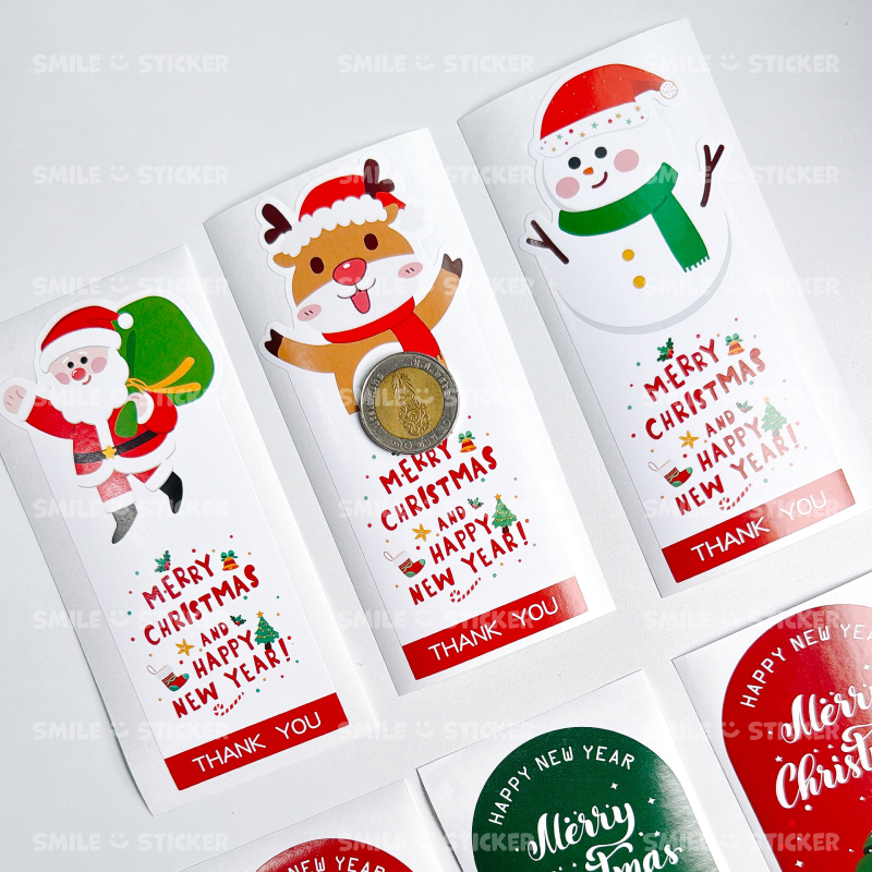 [พร้อมส่ง] สติ๊กเกอร์ Happy New Year & Merry Christmas แพ็ก 50 ดวง ขนาด 6×13 cm.
