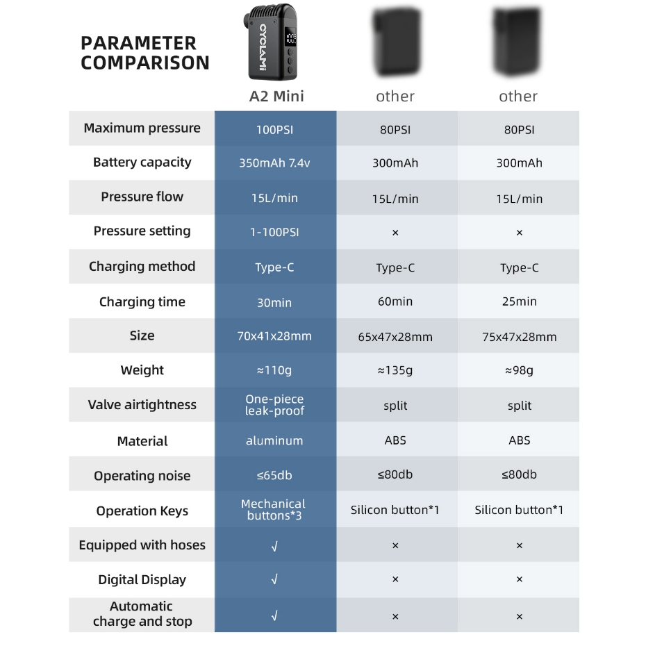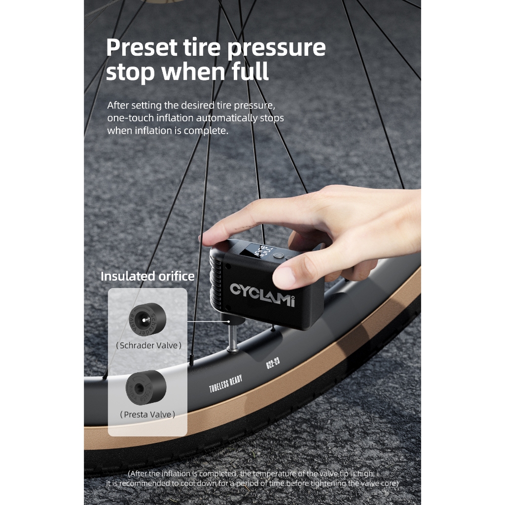 CYCLAMI A2 Mini 100 PSI แบบพกพาจักรยานปั๊มชาร์จ Inflator Type-C จักรยานอุปกรณ์เสริมสําหรับ Presta และ Schrader ยางดิจิตอลจอแสดงผลจักรยานปั๊ม Ball Inflators