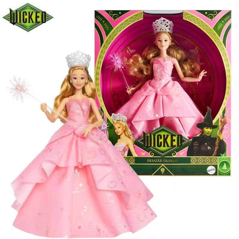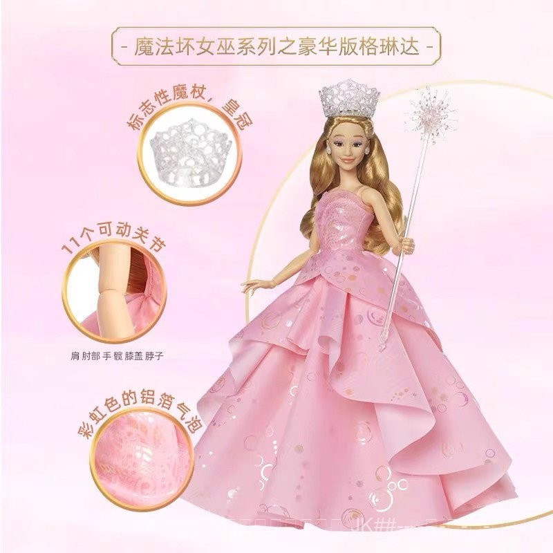 ตุ๊กตาจำลองภาพยนตร์แม่มดวิเศษ Mattel ของแท้ Glinda Elphaba ร่วมมือกับบาร์บี้ HXT63