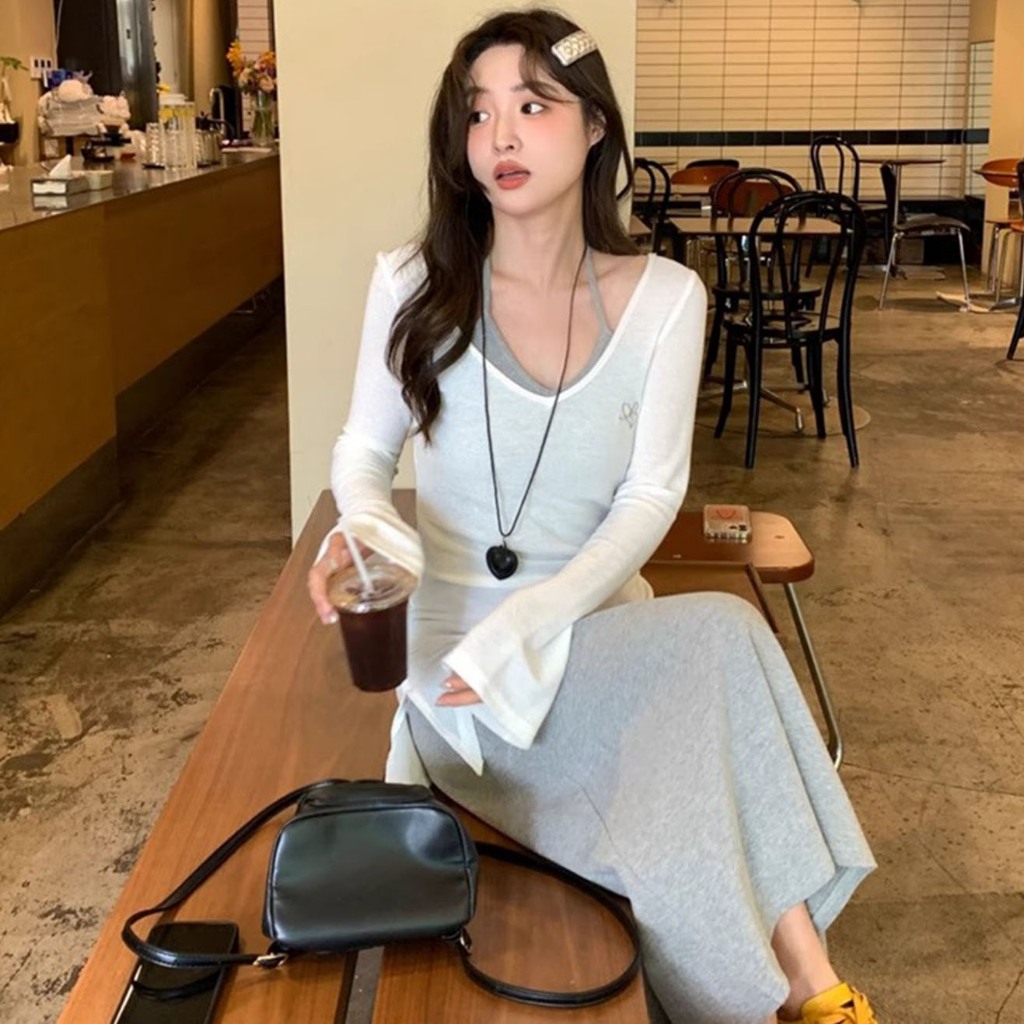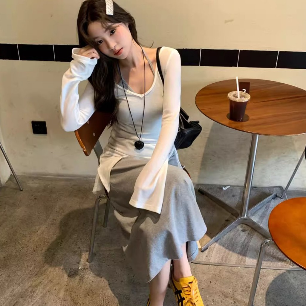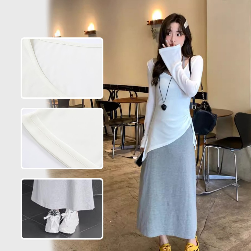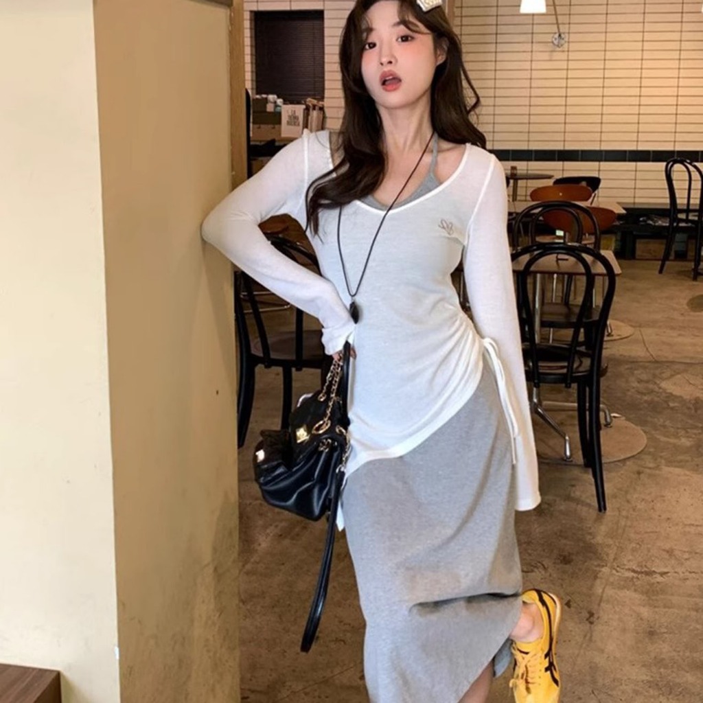 กระโปรงสูทสวย ๆ ยอดนิยมของผู้หญิงจีบจีบจีบบริสุทธิ์เพื่อลดอายุและสวมชุดเดรสคอห้อยใหม่ทั้งชุด