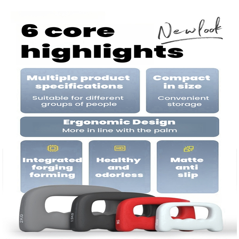 แกนด้านในของดัมเบลทำจากกระบวนการหล่อทรายดินเหนียวที่มีไส้แข็งความหนาแน่นสูงน้ำหนักที่แม่นยำแม้กระทั่งจุดศูนย์ถ่วงทนทานและทนต่อการตก
