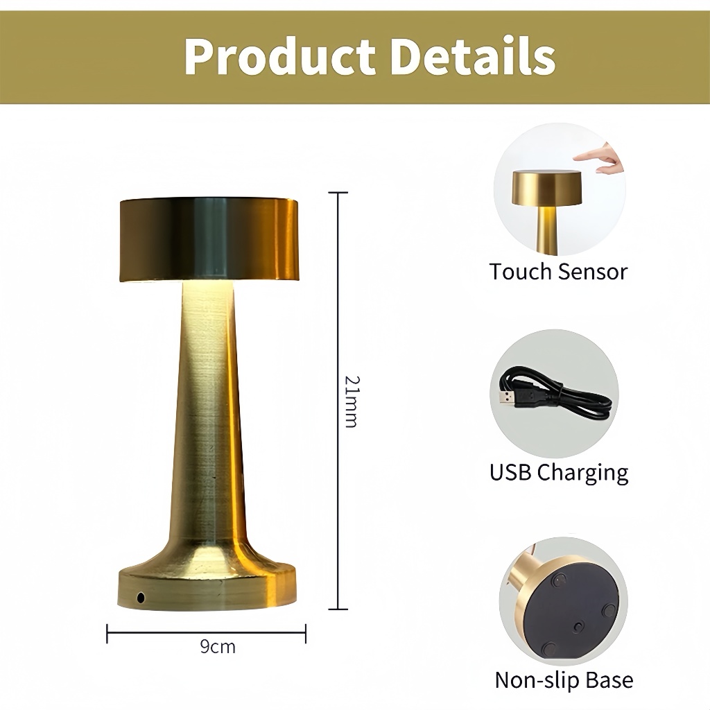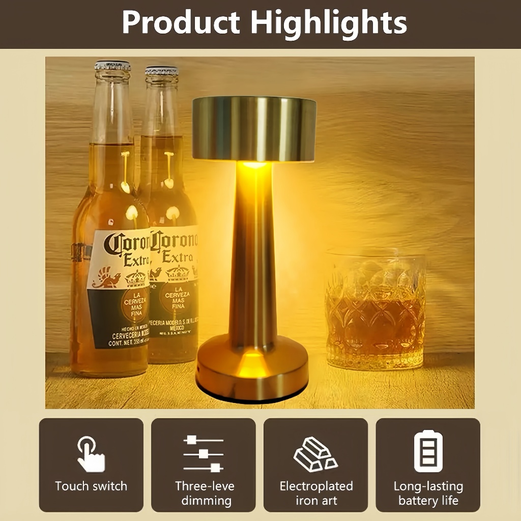 โคมไฟตกแต่งห้อง/ตั้งโต๊ะอาหาร แบบชาร์จ หรี่3ระดับ ใช้ได้10ชั่วโมง เหมาะสำหรับใช้งานกลางคืน