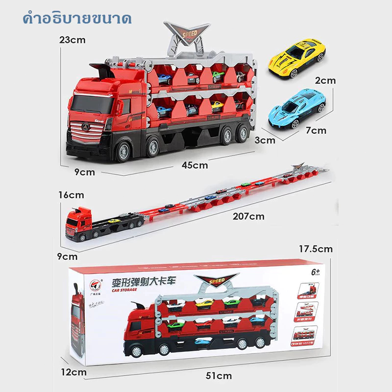 #? สินค้า: ชุดรถบรรทุกแปลงร่าง + รถแข่ง 8 คัน | เล่นได้หลายวิธี ให้น้องเติบโตด้วยความสุข!